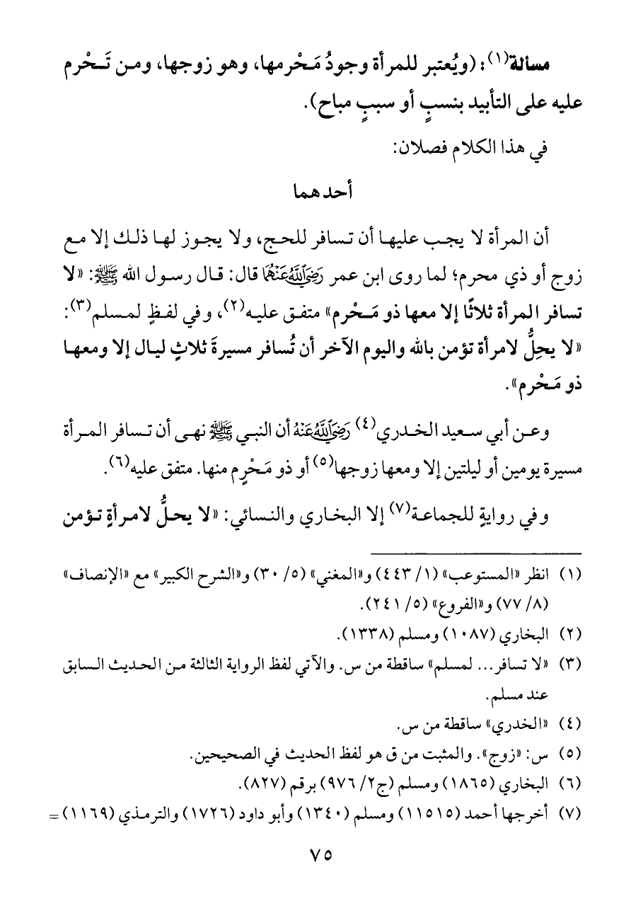(¬٧) أخرجها أحمد (١١٥١٥) ومسلم (١٣٤٠) وأبو داود (١٧٢٦) والترمذي (١١٦٩) وابن ماجه (٢٨٩٨) من حديث أبي سعيد الخدري.