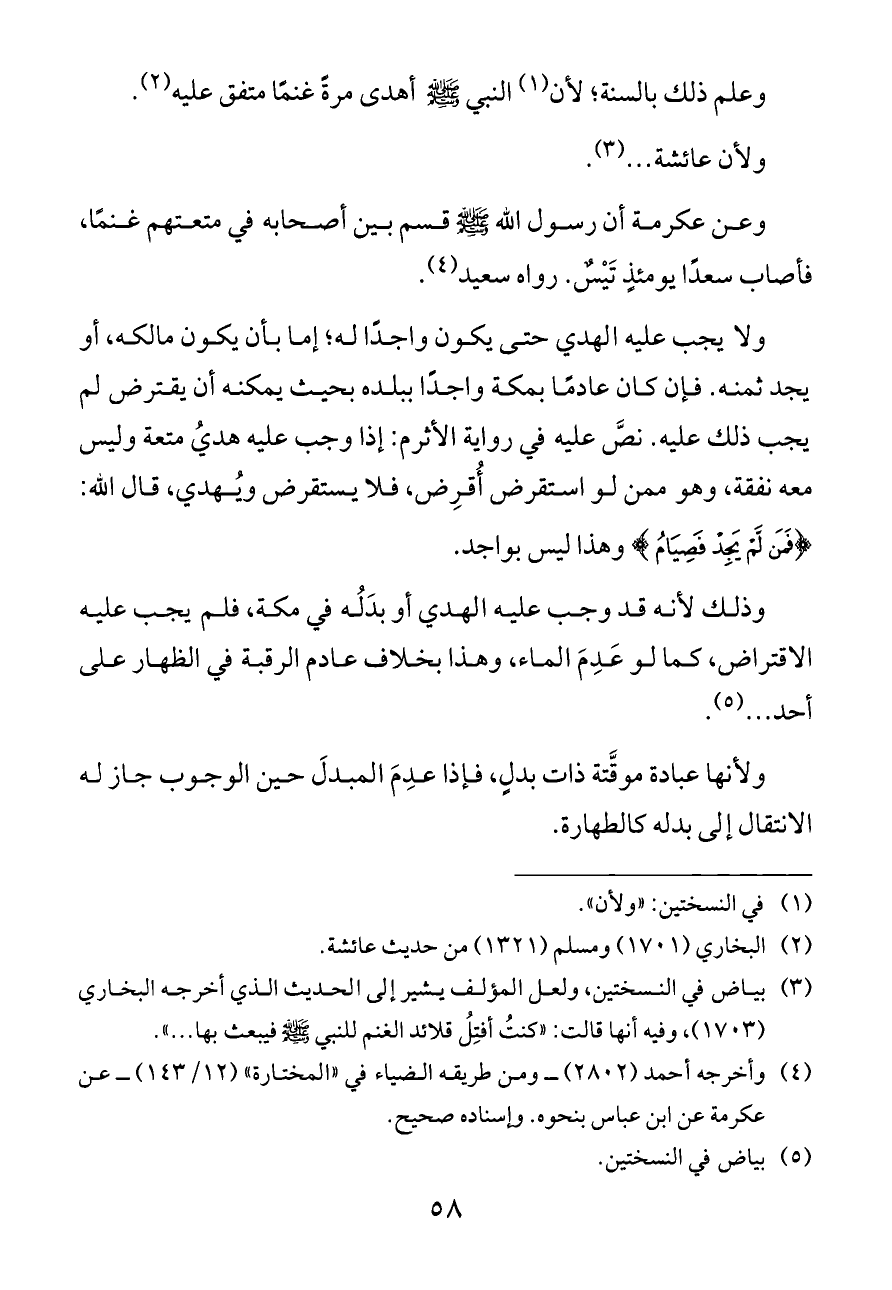 وعلم ذلك بالسنة؛ لأن (¬١) النبي - صلى الله عليه وسلم - أهدى مرةً غنمًا متفق عليه (¬٢).