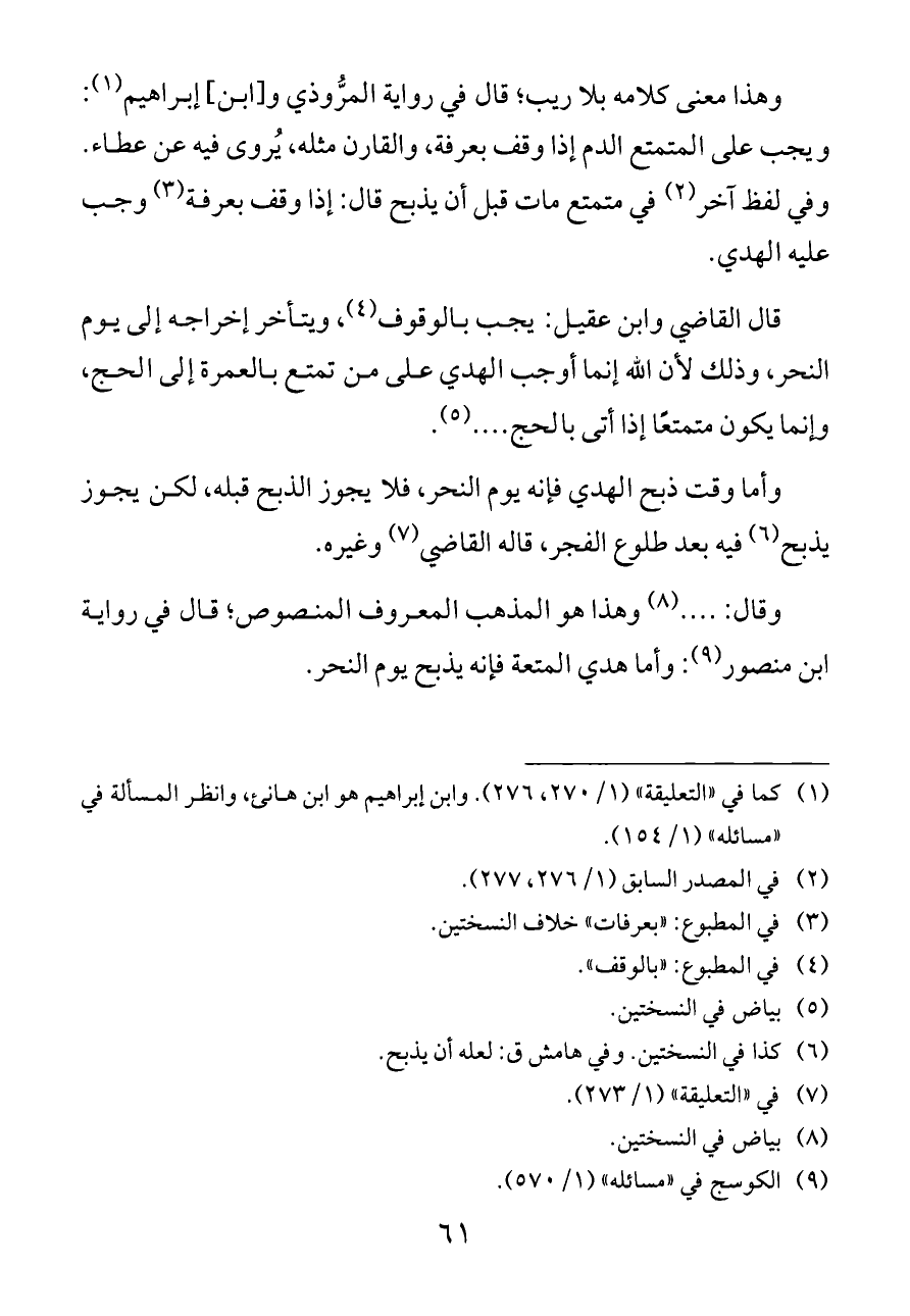 (¬١) كما في «التعليقة» (١/ ٢٧٠، ٢٧٦). وابن إبراهيم هو ابن هانئ، وانظر المسألة في «مسائله» (١/ ١٥٤).
