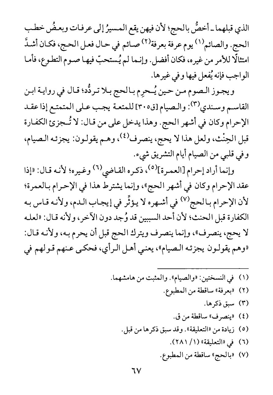 (¬١) في النسختين: «والصيام». والمثبت من هامشهما.