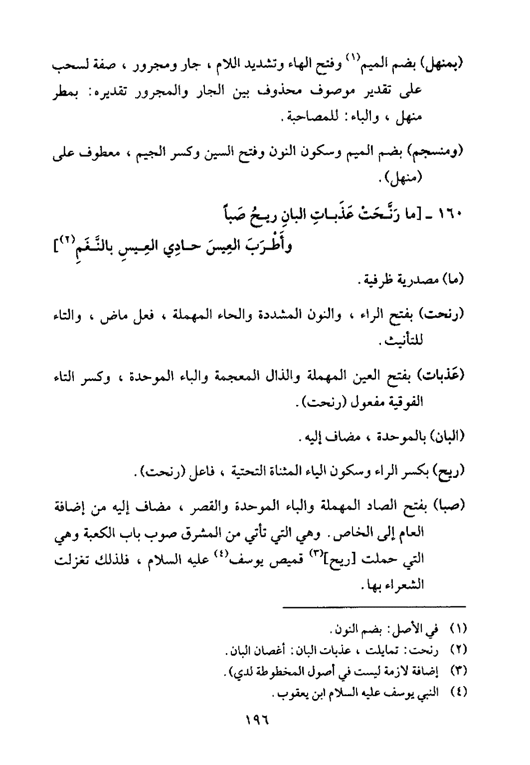 160-[ما رنّحت عذبات البان ريح صبا ... وأطرب العيس حادي العيس بالنّغم «2» ]
