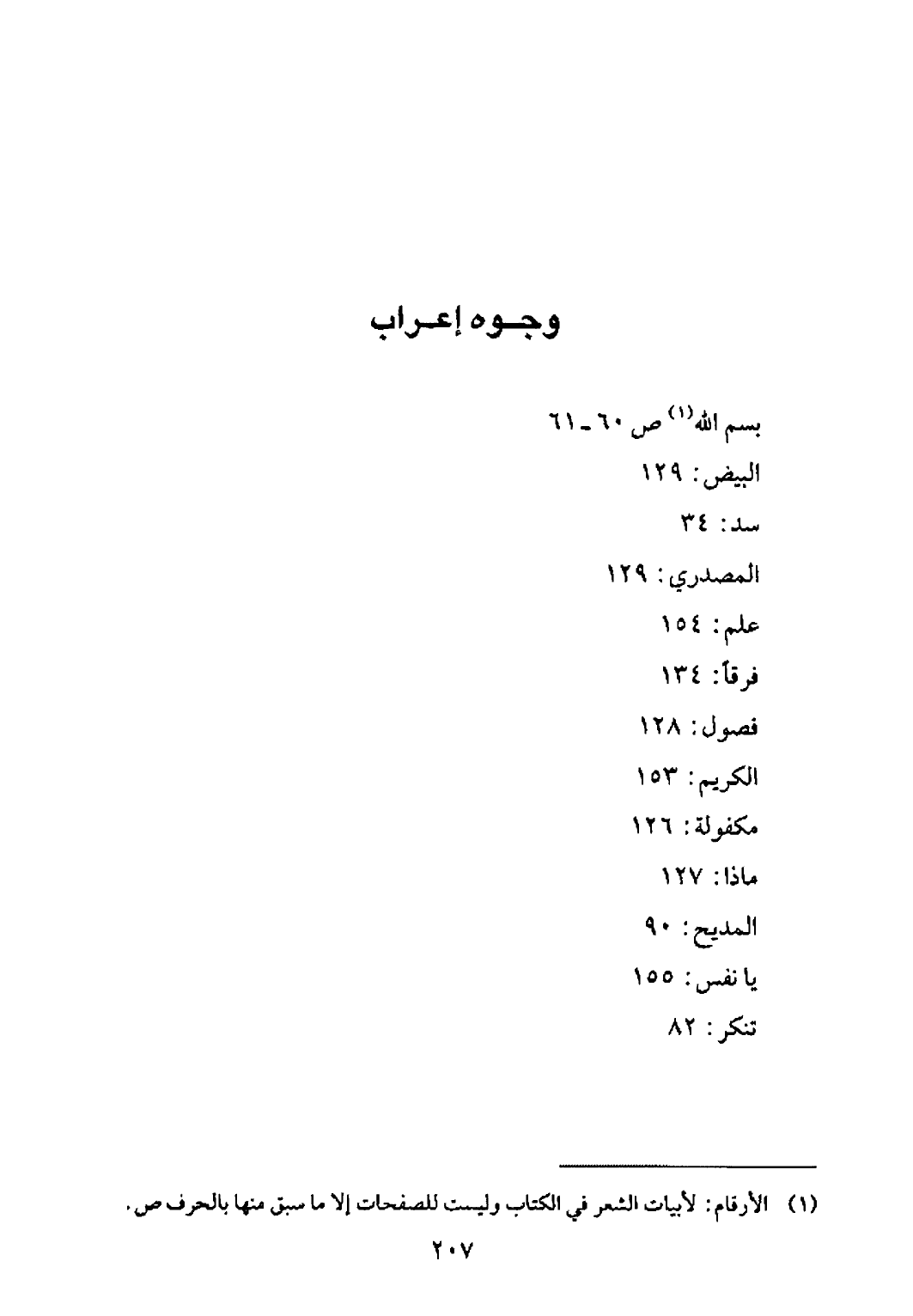 (1) الأرقام: لأبيات الشعر في الكتاب وليست للصفحات إلا ما سبق منها بالحرف ص.