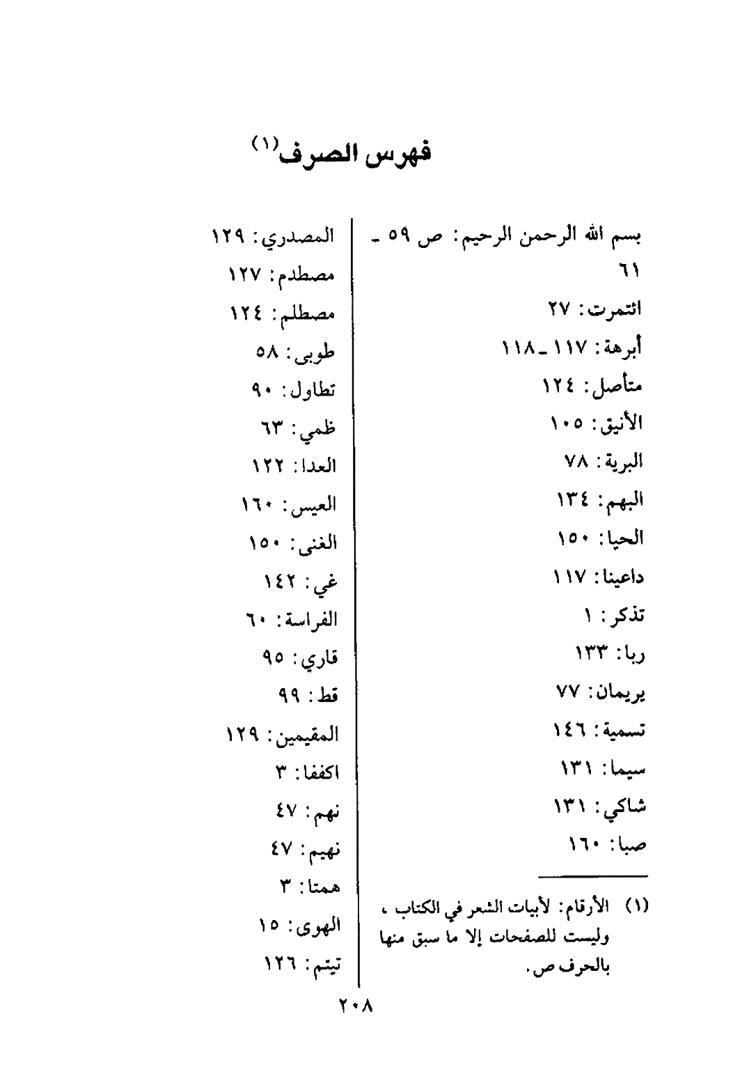 (1) الأرقام: لأبيات الشعر في الكتاب، وليست للصفحات إلا ما سبق منها بالحرف ص.