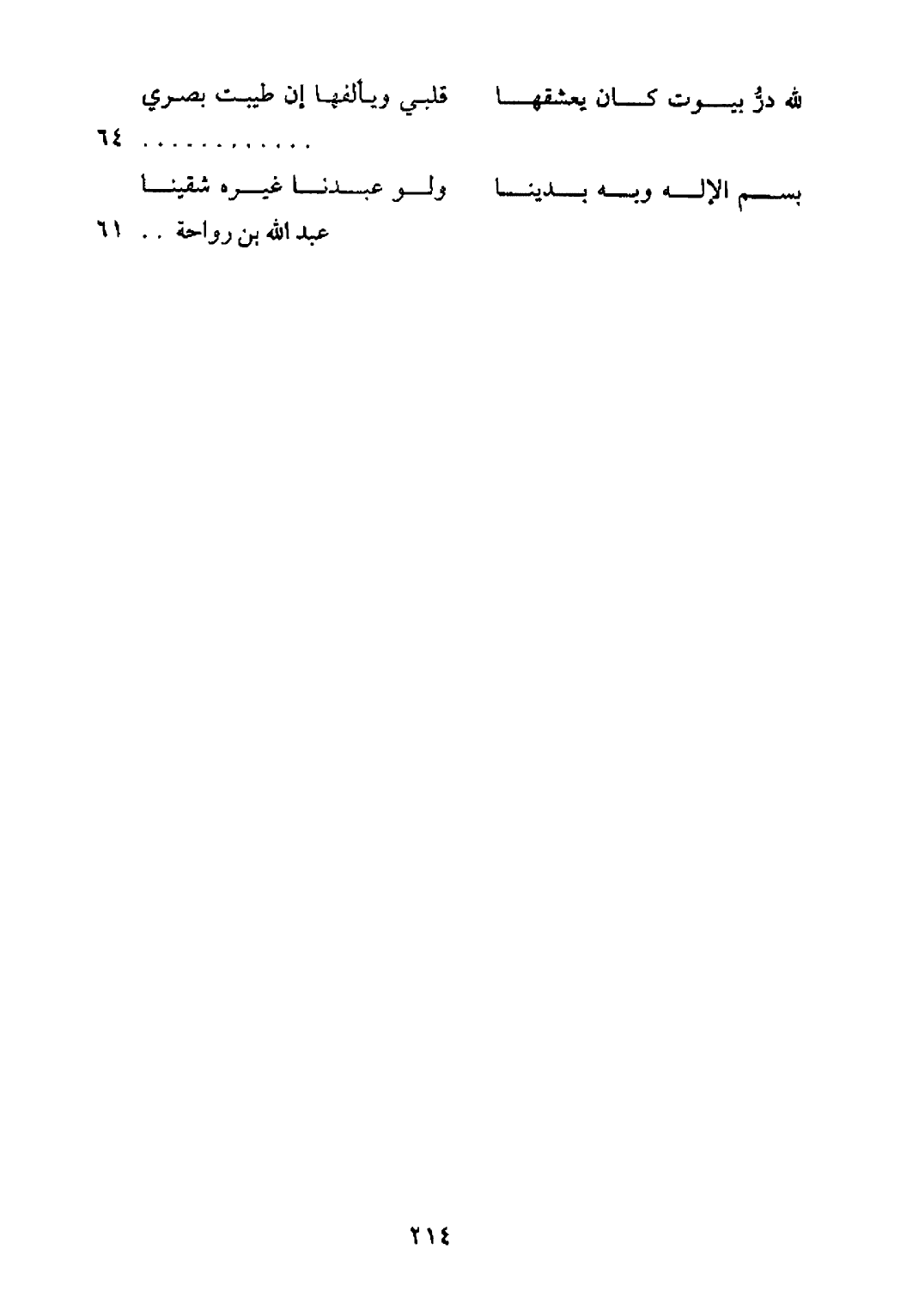 لله درّ بيوت كان يعشقها ... قلبي ويألفها إن طيبت بصري