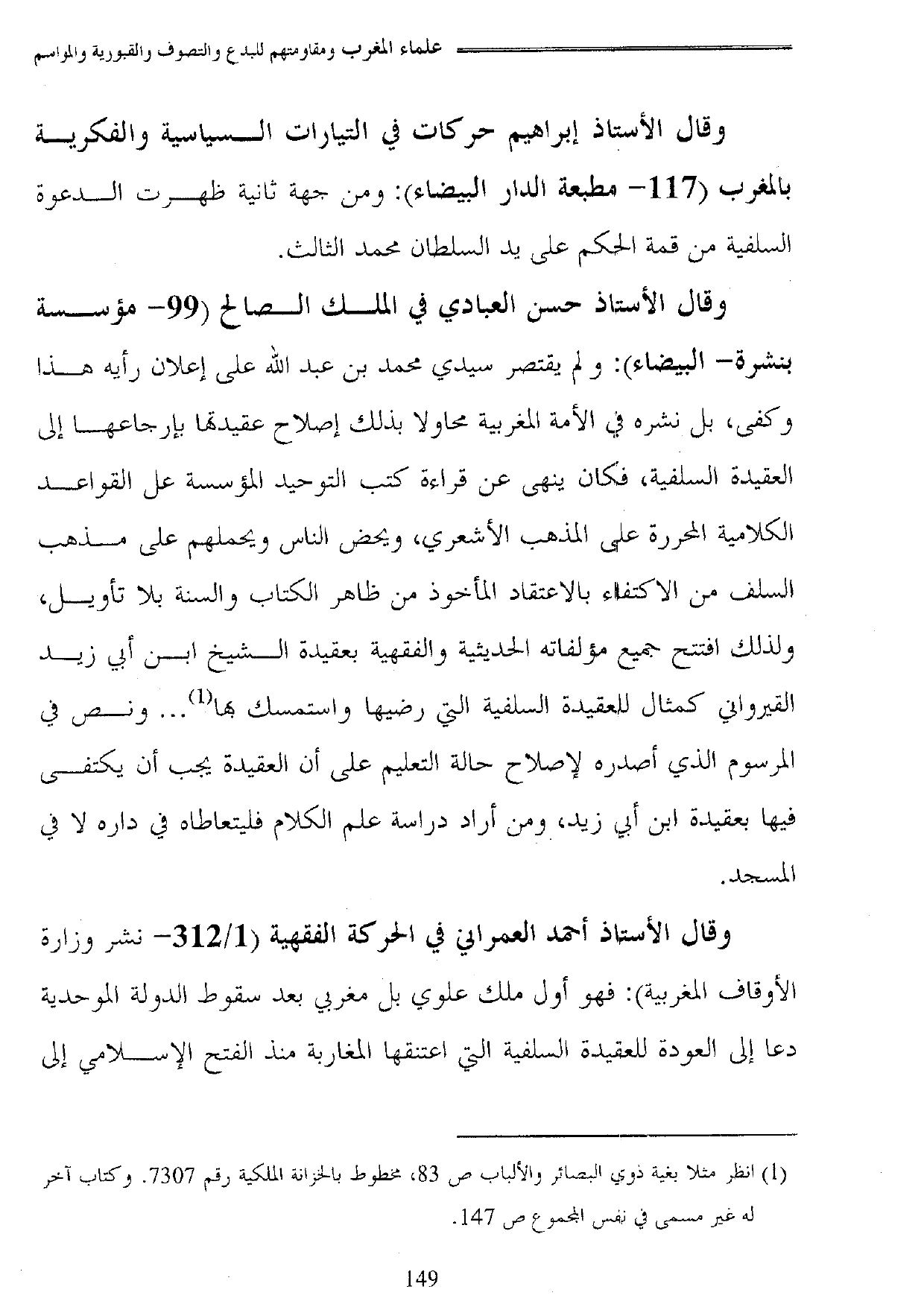 وقال الأستاذ إبراهيم حركات في التيارات السياسية والفكرية بالمغرب (117 - مطبعة الدار البيضاء): ومن جهة ثانية ظهرت الدعوة السلفية من قمة الحكم على يد السلطان محمد الثالث.