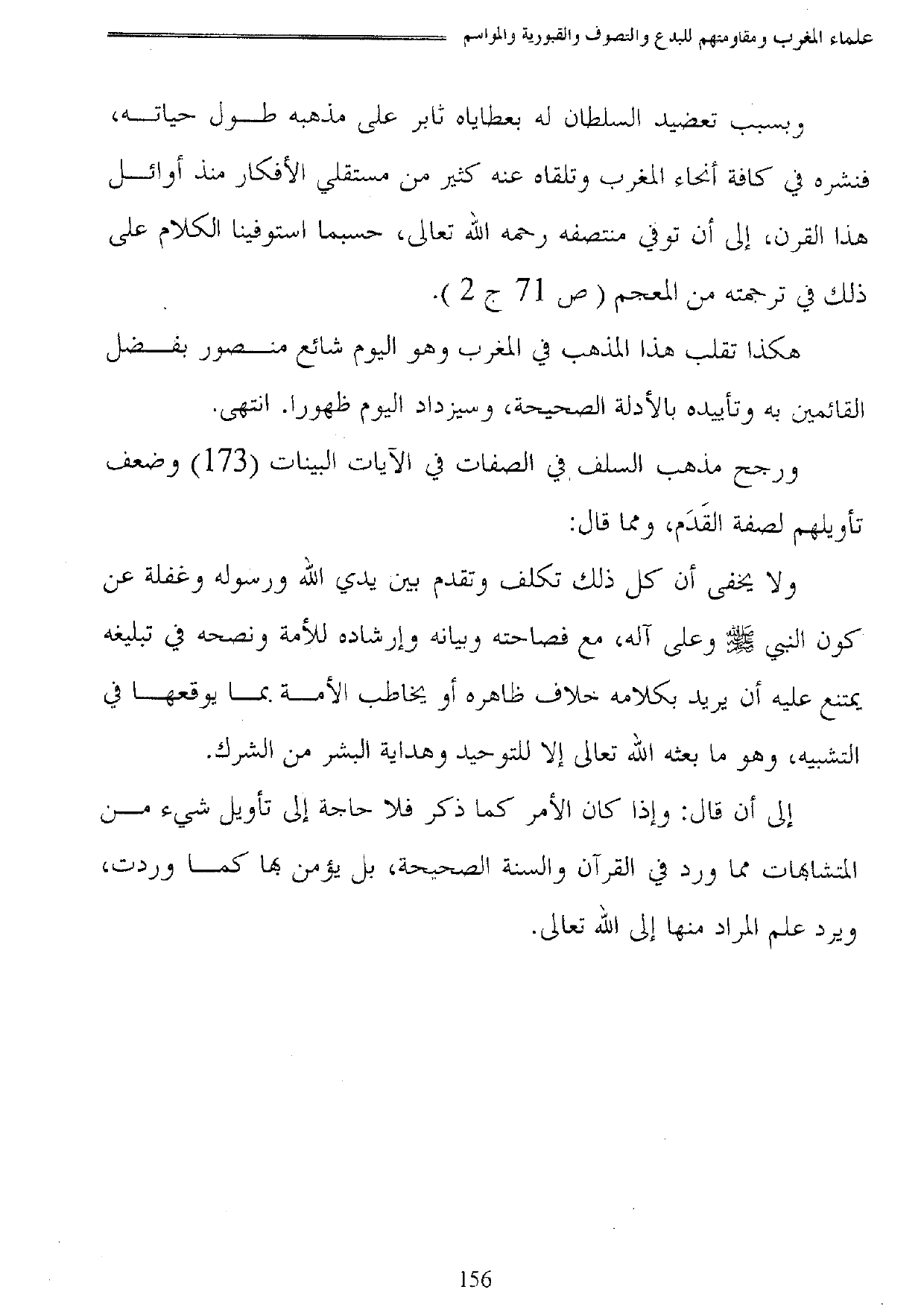 هكذا تقلب هذا المذهب في المغرب وهو اليوم شائع منصور بفضل القائمين به وتأييده بالأدلة الصحيحة، وسيزداد اليوم ظهورا. انتهى.