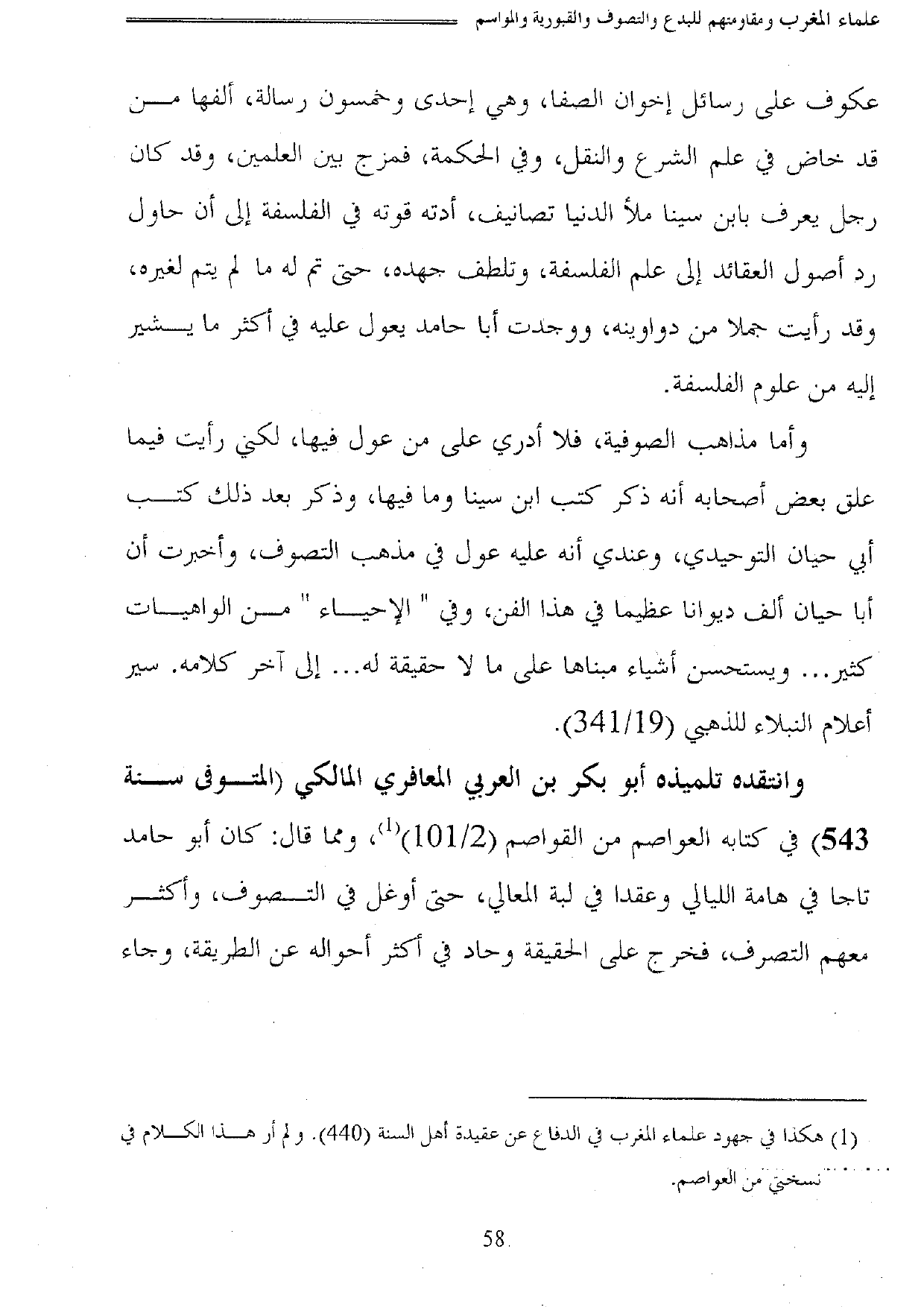 (¬1) هكذا في جهود علماء المغرب في الدفاع عن عقيدة أهل السنة (440). ولم أر هذا الكلام في نسختي من العواصم.