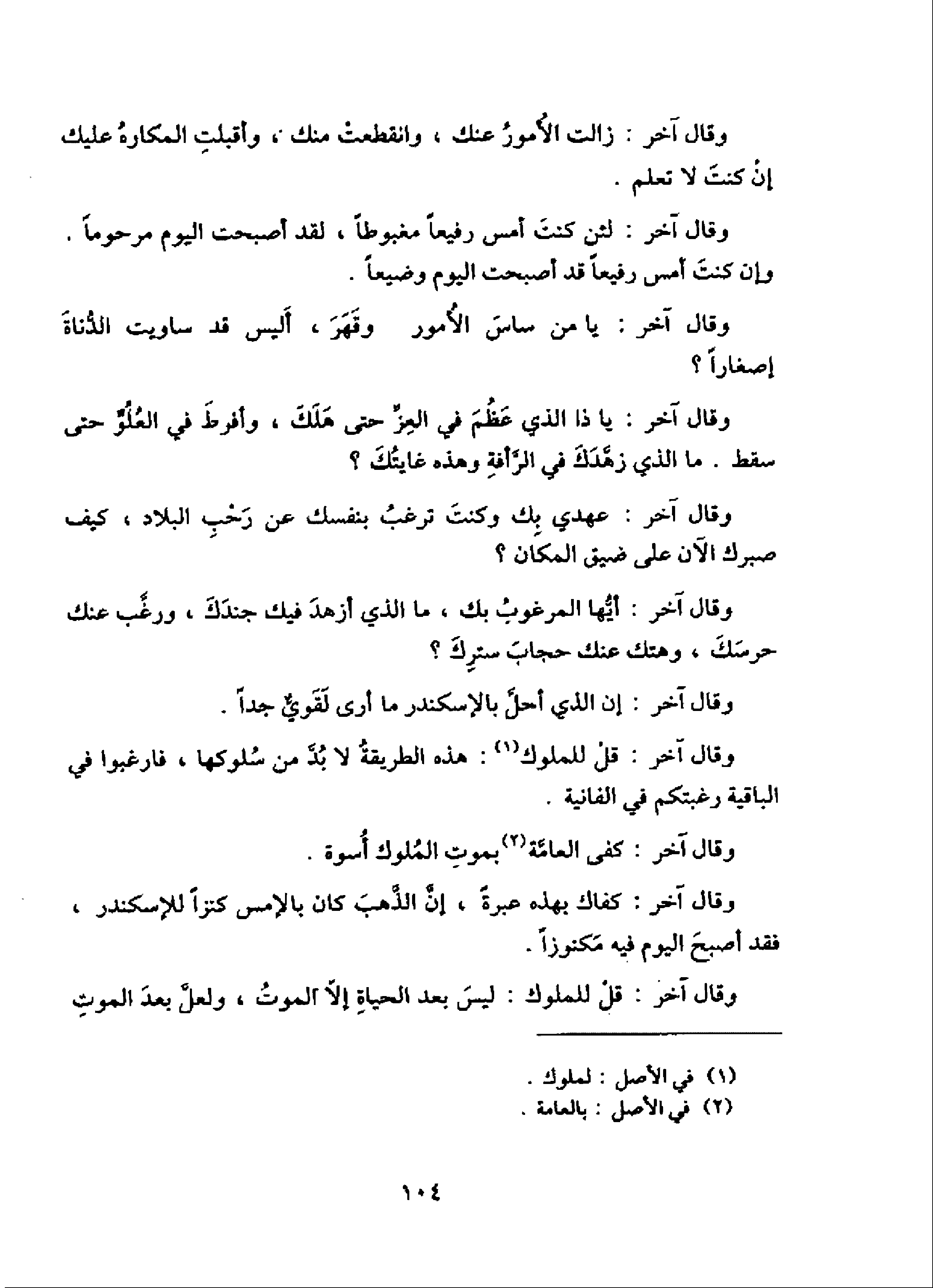 وقال آخر: أيّها المرغوب بك، ما الذي أزهد فيك جندك، ورغّب عنك حرسك، وهتك عنك حجاب سترك؟