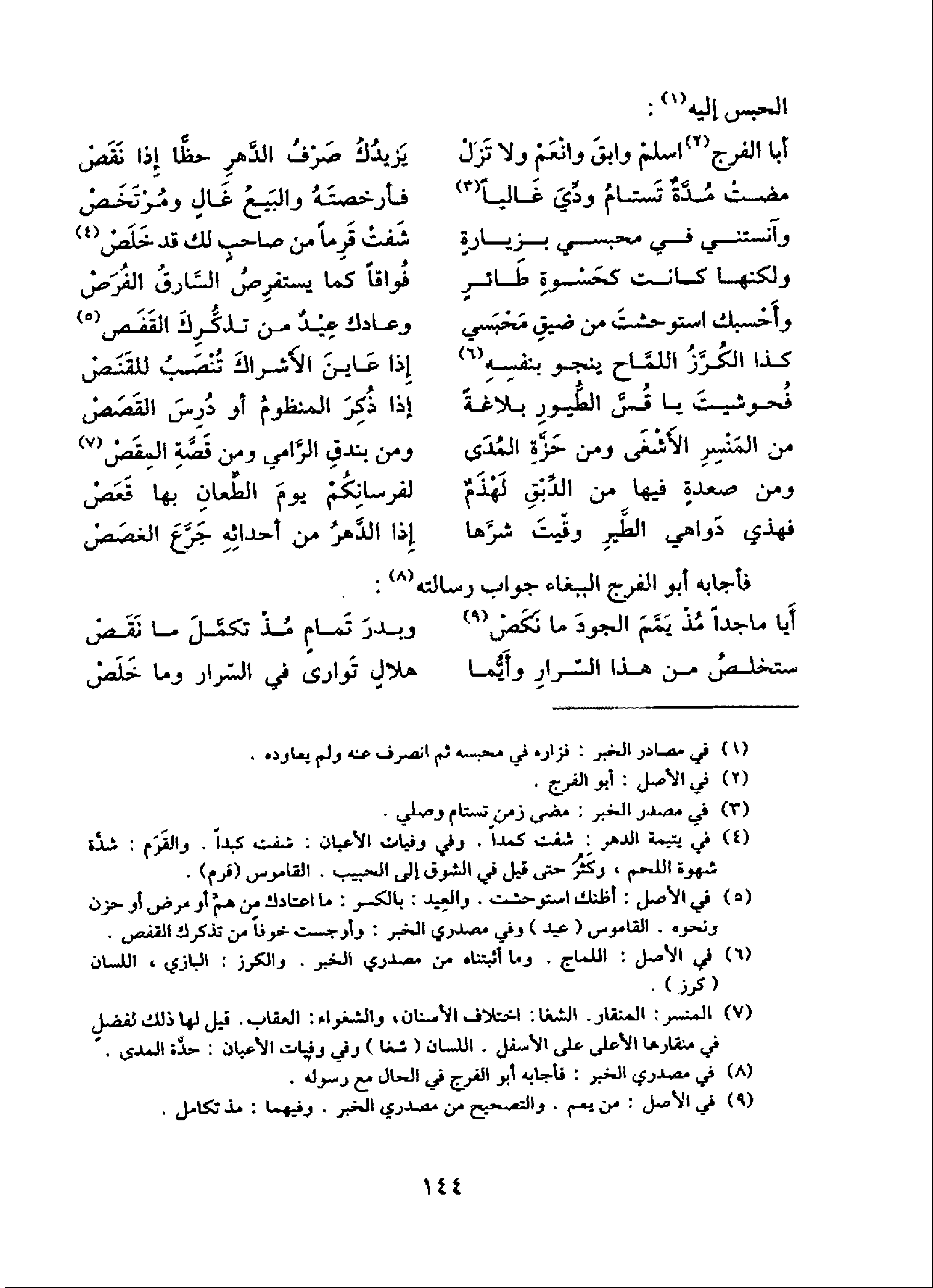 (¬8) في مصدري الخبر: فأجابه أبو الفرج في الحال مع رسوله.