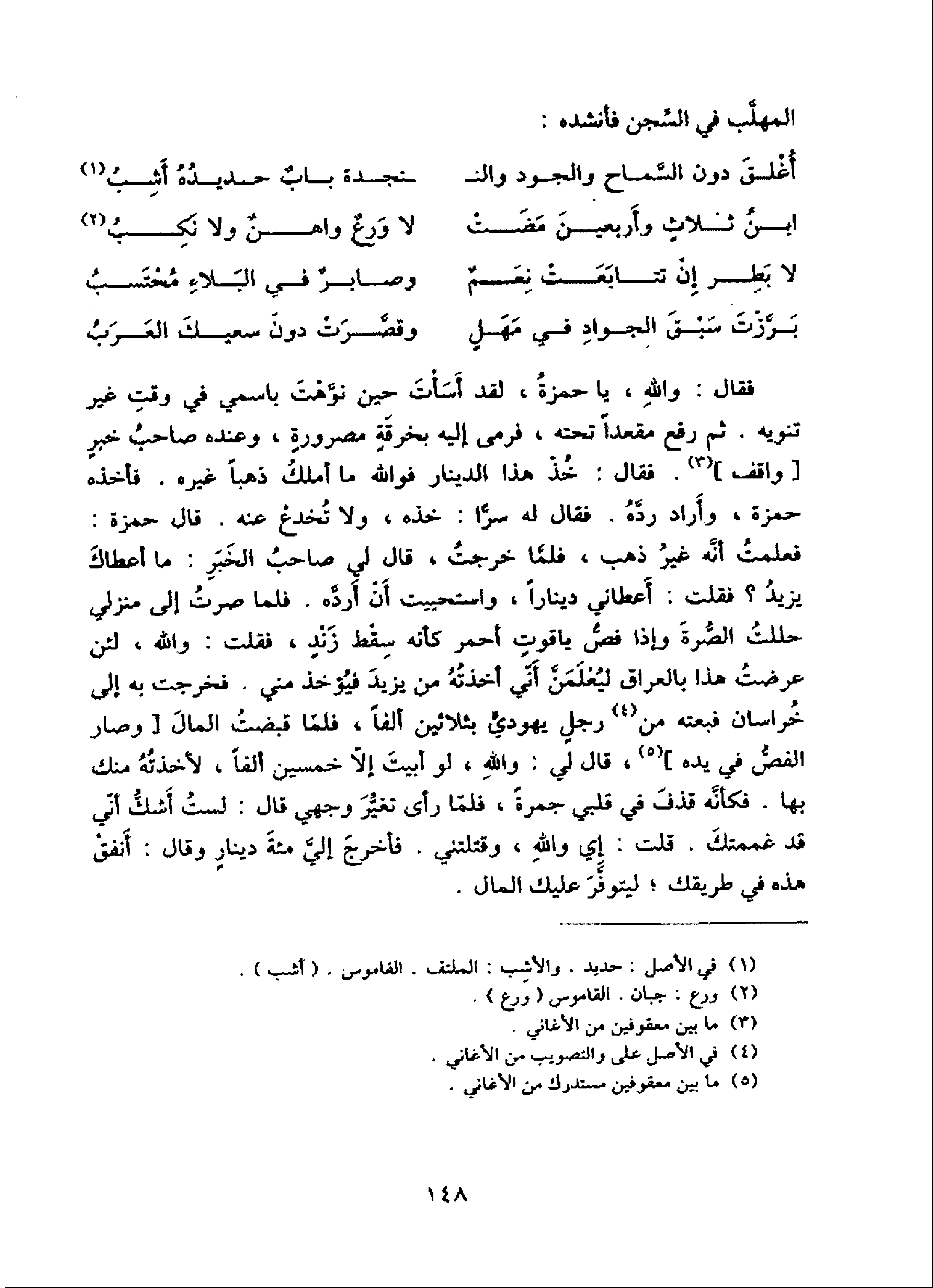 المهلّب في السّجن فأنشده:
