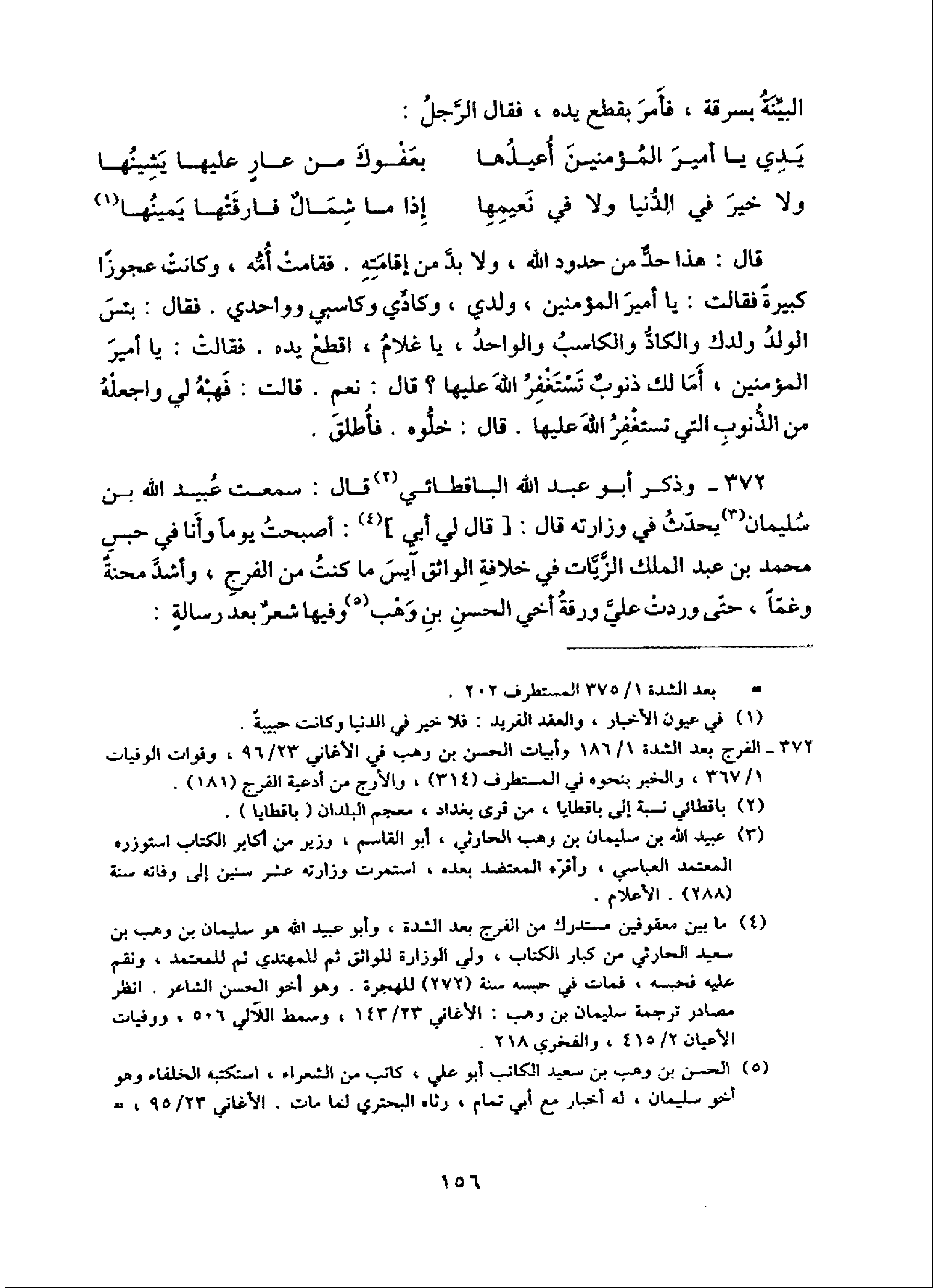 (¬4) ما بين معقوفين مستدرك من الفرج بعد الشدة، وأبو عبيد الله هو سليمان بن وهب بن سعيد الحارثي من كبار الكتاب، ولي الوزارة للواثق ثم للمهتدي ثم للمعتمد، ونقم عليه فحبسه، فمات في حبسه سنة (272) للهجرة. وهو أخو الحسن الشاعر. انظر مصادر ترجمة سليمان بن وهب: الأغاني 23/ 143، وسمط اللآلي 506، ووفيات الأعيان 2/ 415، والفخري 218.