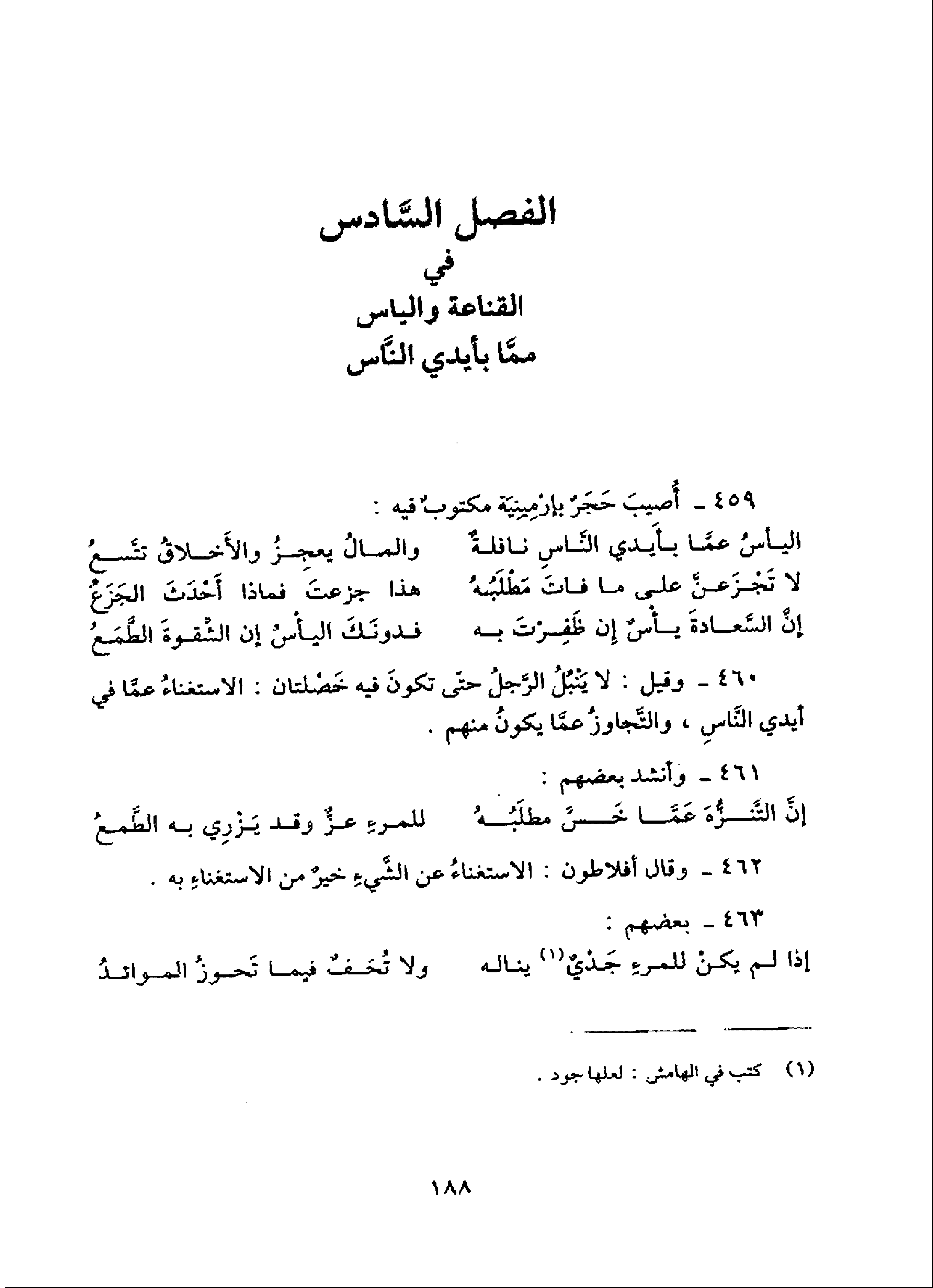 اليأس عمّا بأيدي النّاس نافلة … والمال يعجز والأخلاق تتّسع