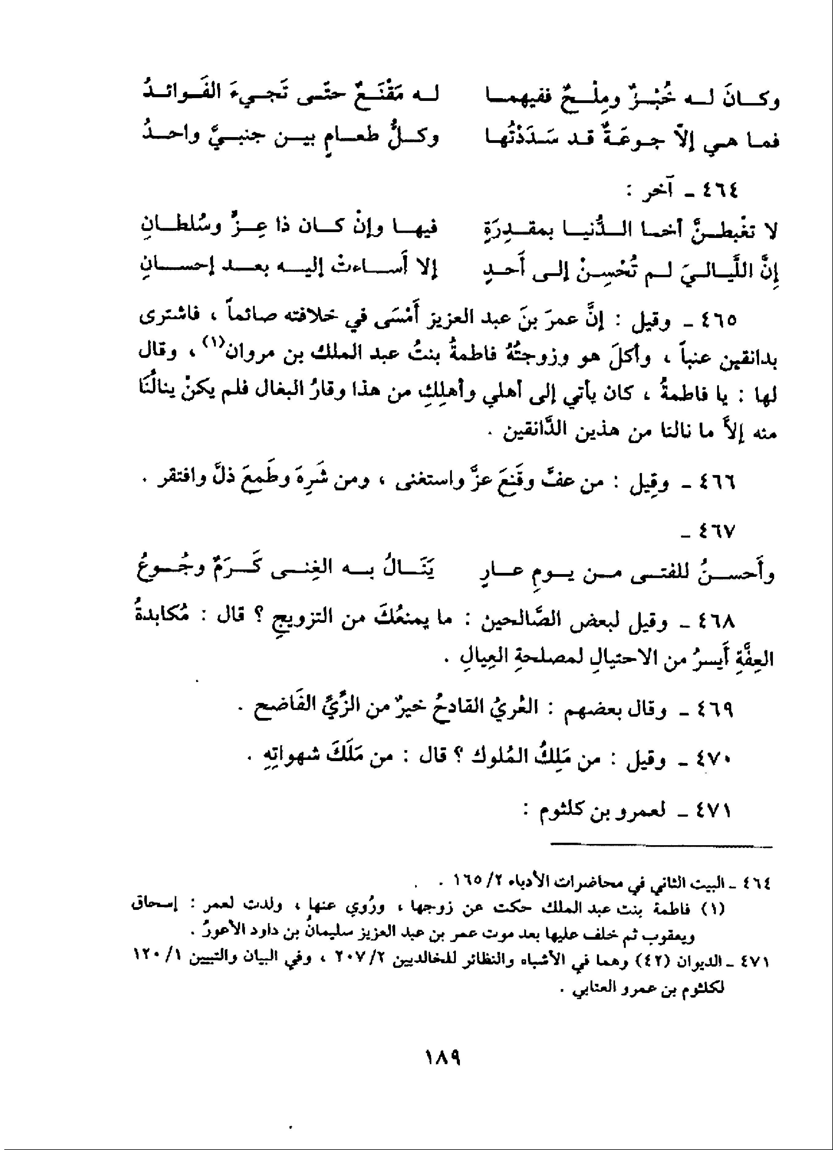 471 - الديوان (42) وهما في الأشباه والنظائر للخالديين 2/ 207، وفي البيان والتبيين 1/ 120 لكلثوم بن عمرو العتابي.