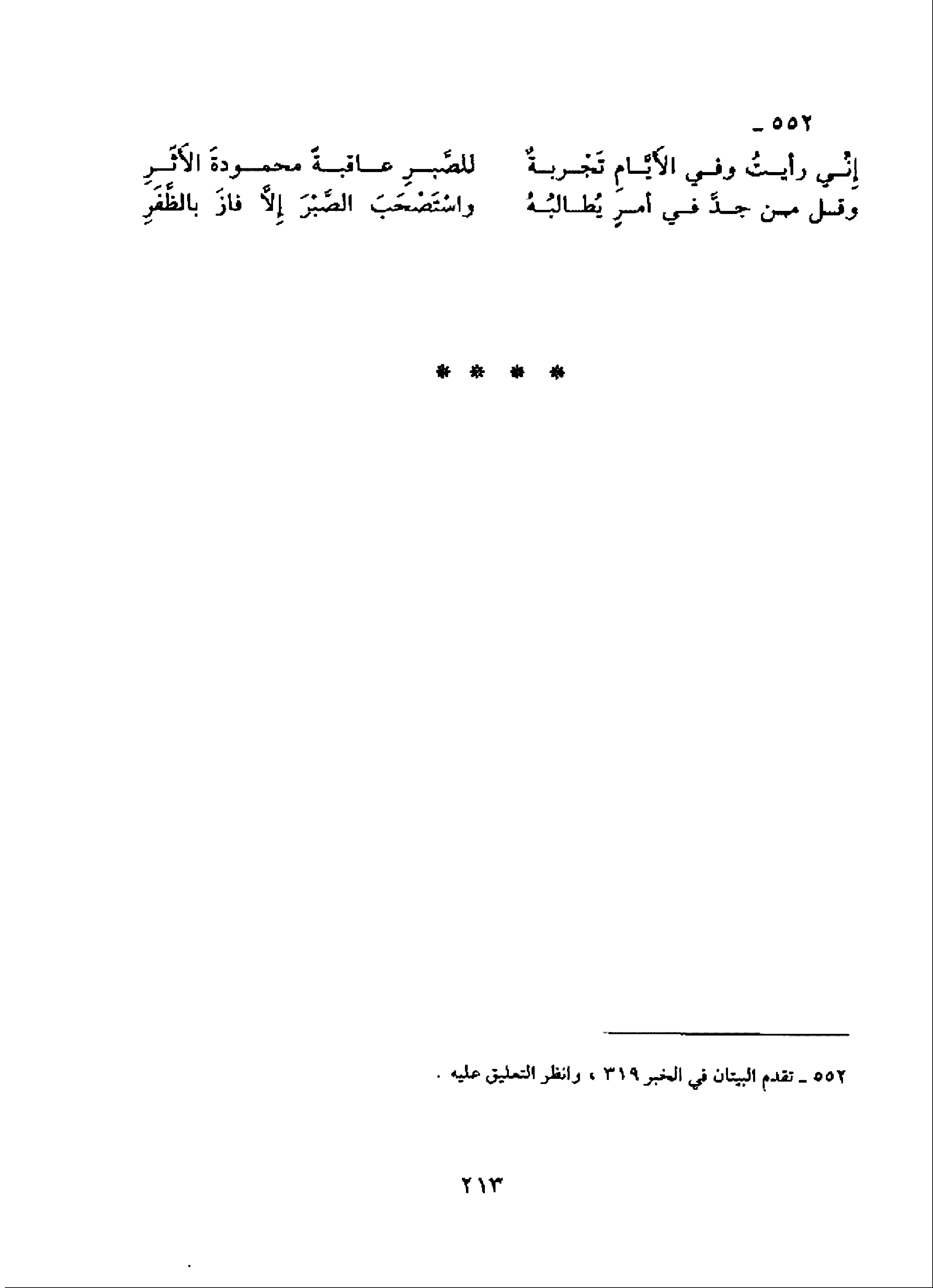 552 - إنّي رأيت وفي الأيّام تجربة … للصّبر عاقبة محمودة الأثر