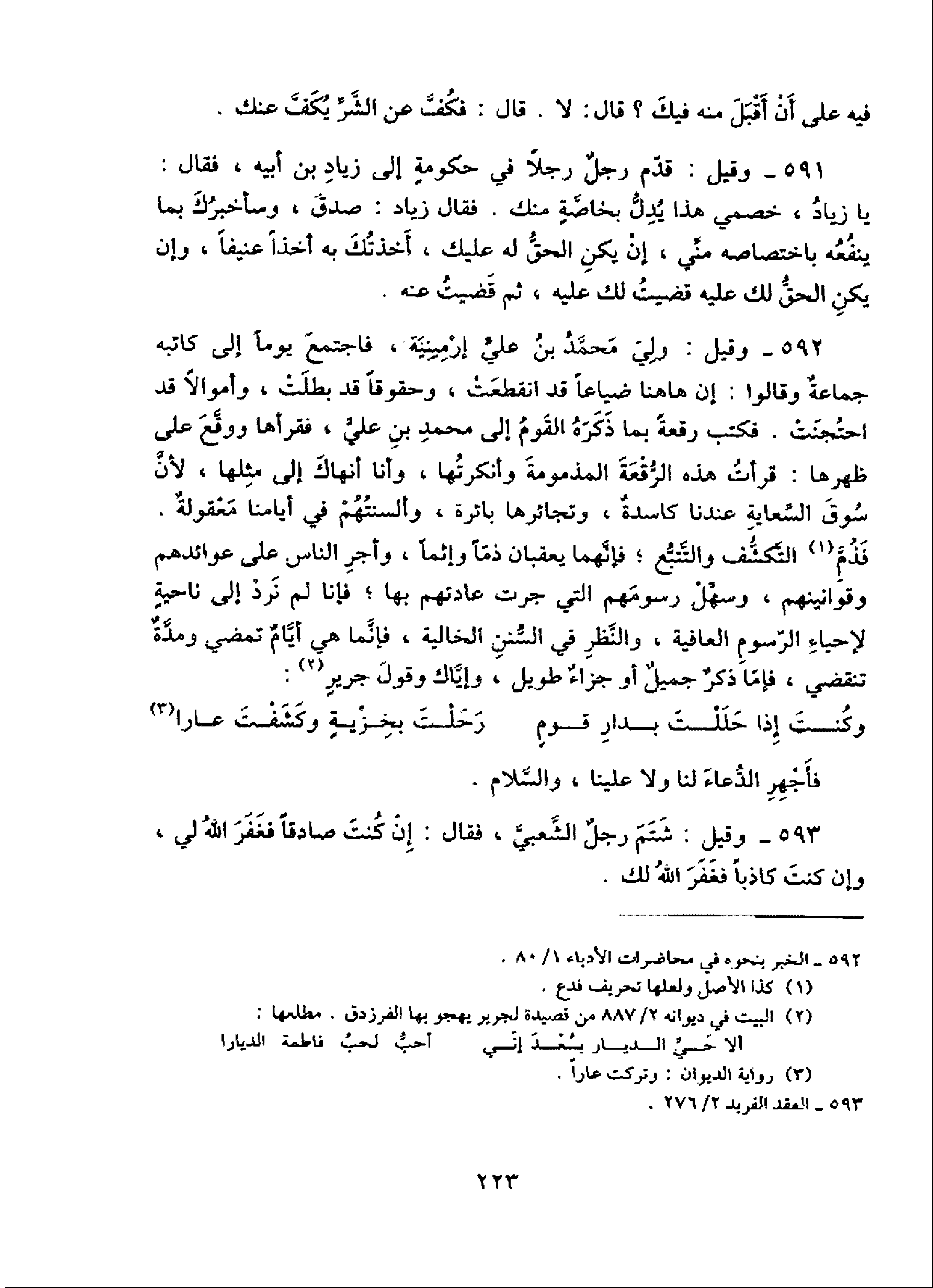 592 - الخبر بنحوه في محاضرات الأدباء 1/ 80.