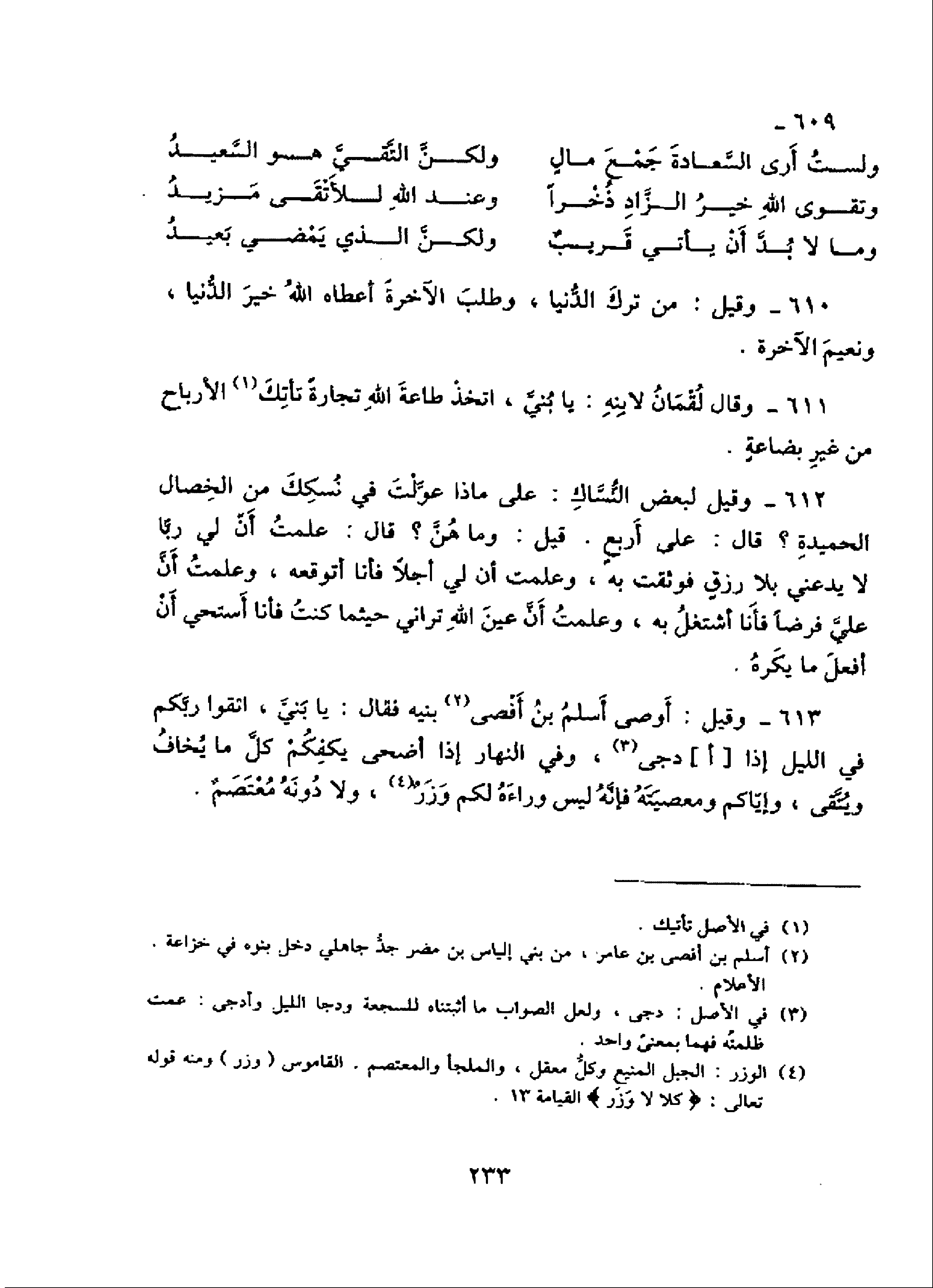 609 - ولست أرى السّعادة جمع مال … ولكنّ التّقيّ هو السّعيد