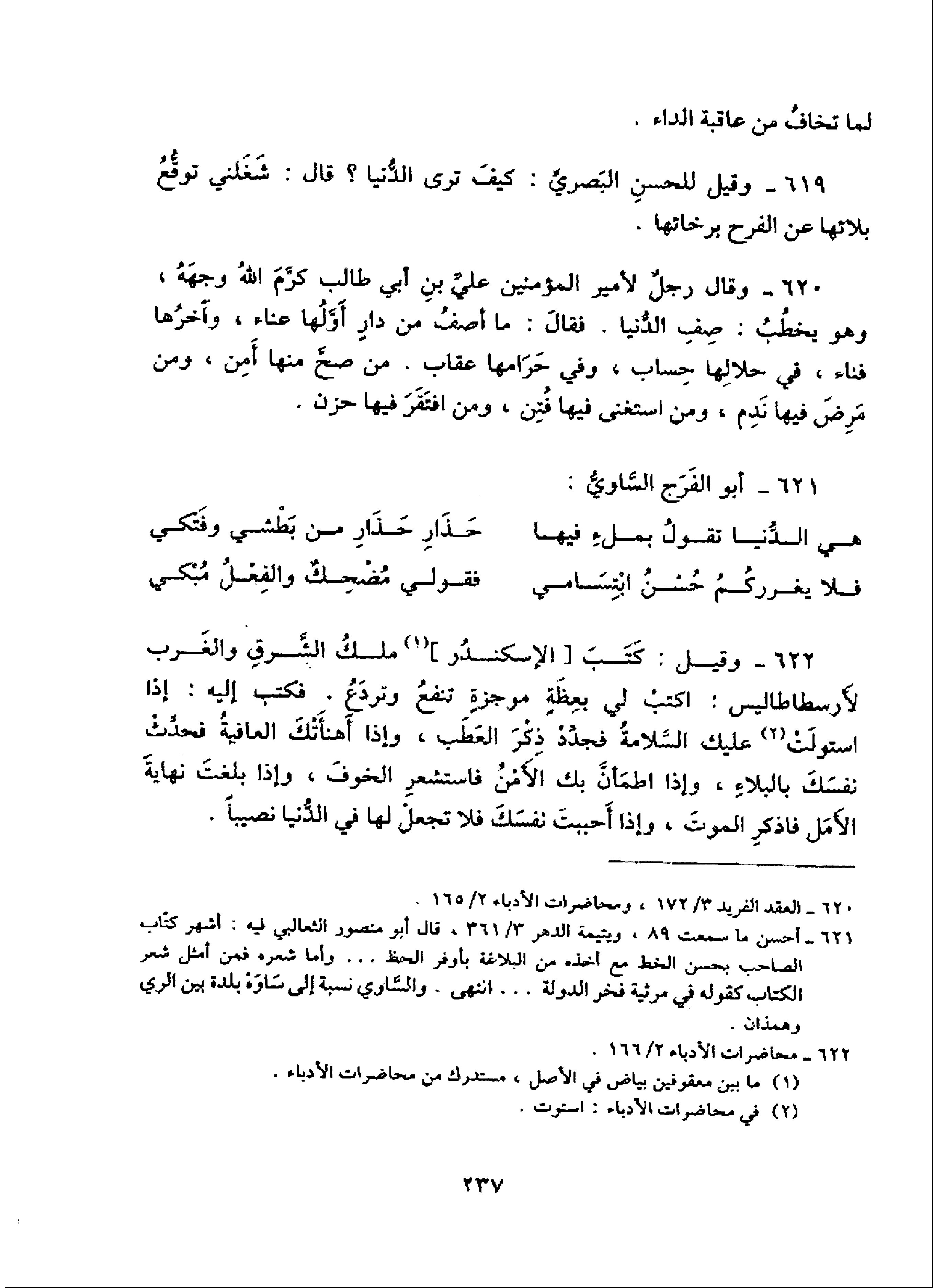 620 - العقد الفريد 3/ 172، ومحاضرات الأدباء 2/ 165.