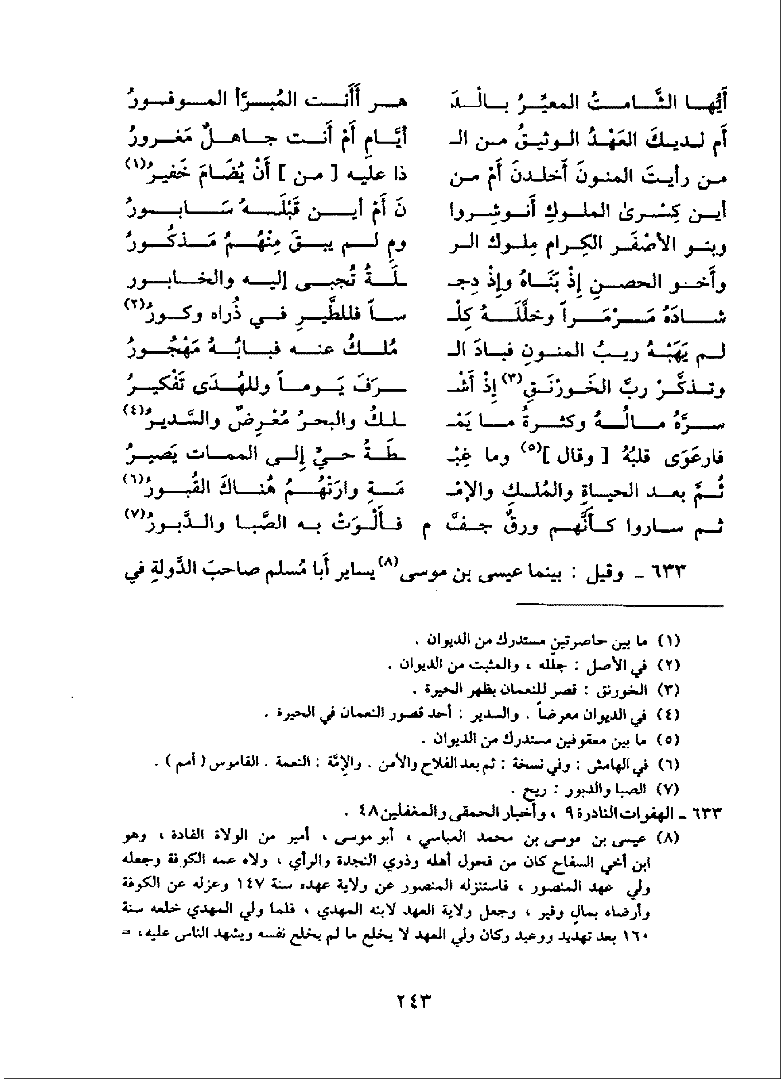 633 - وقيل: بينما عيسى بن موسى (¬8) يساير أبا مسلم صاحب الدّولة في