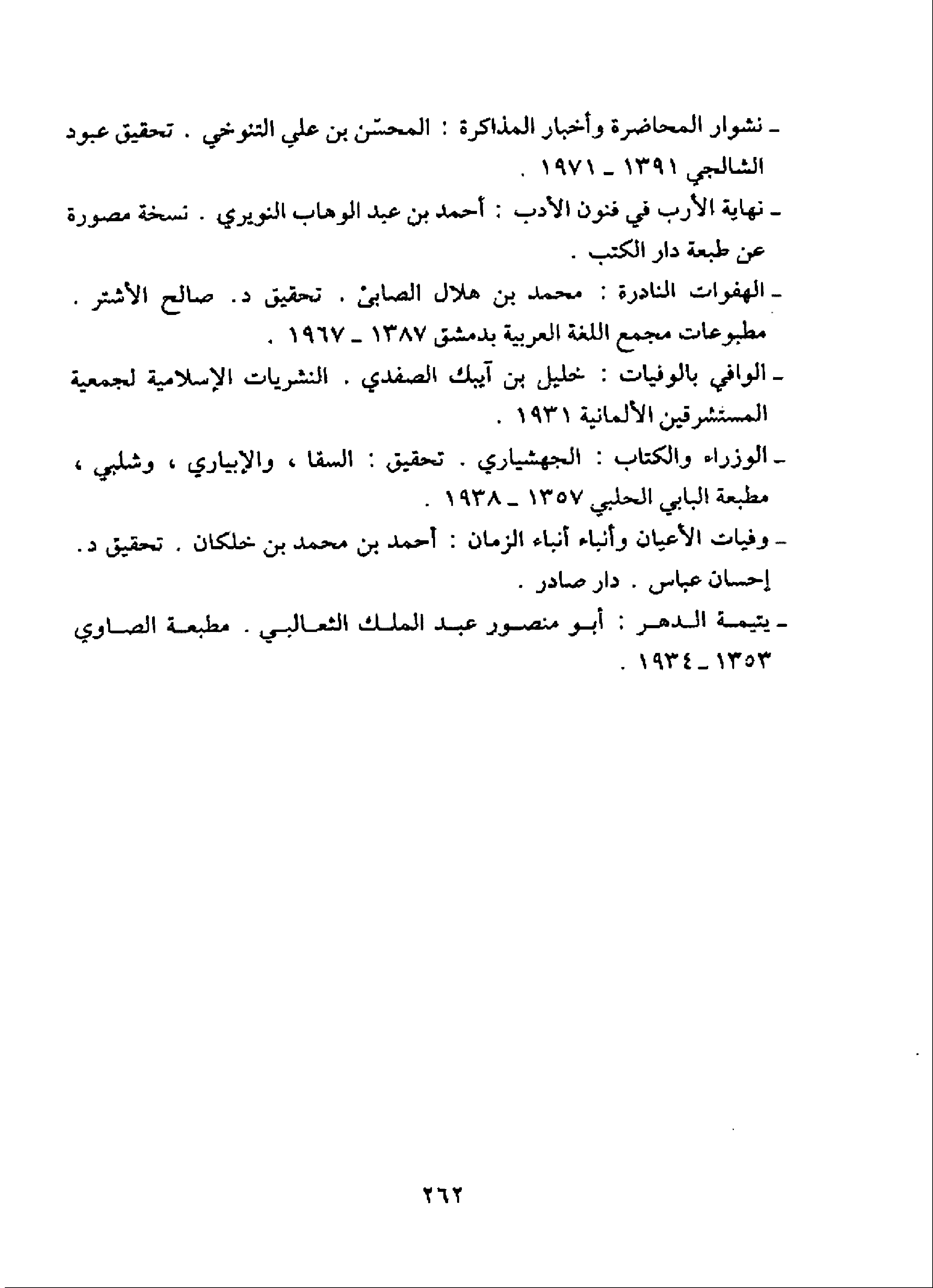 -نشوار المحاضرة وأخبار المذاكرة: المحسّن بن علي التنوخي. تحقيق عبود الشالجي 1391 - 1971.