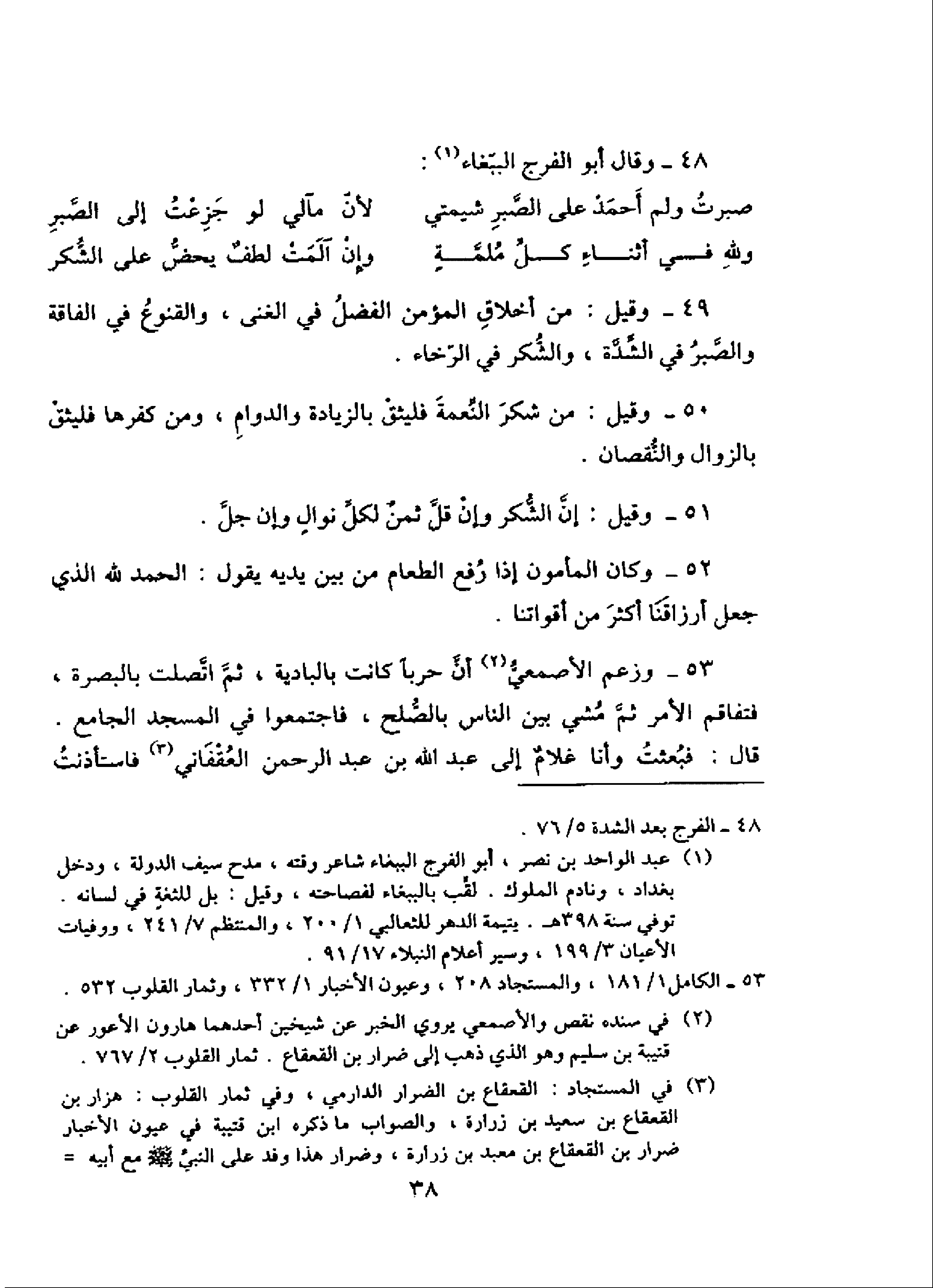 53 - الكامل 1/ 181، والمستجاد 208، وعيون الأخبار 1/ 332، وثمار القلوب 532.
