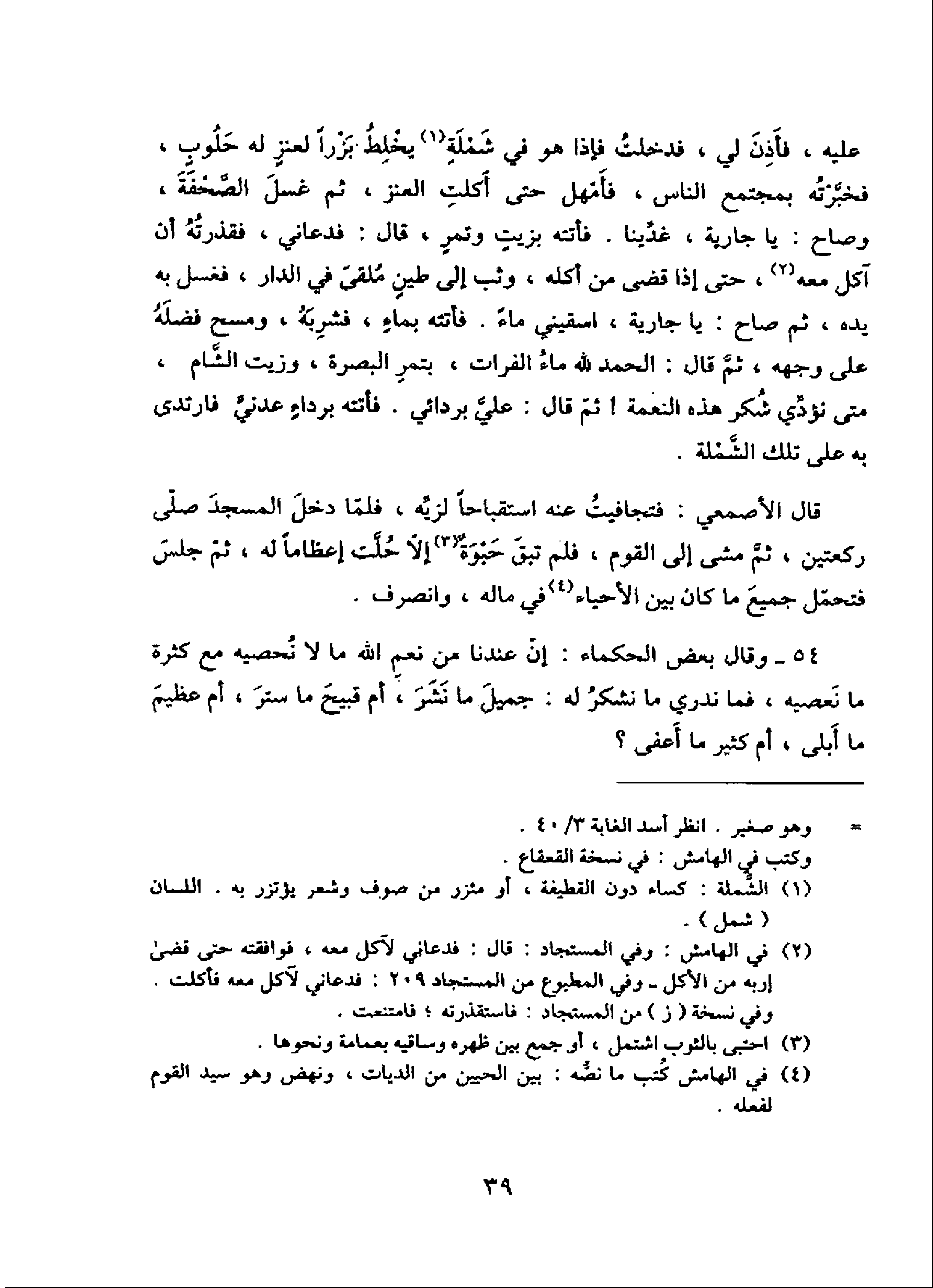 (¬2) في الهامش: وفي المستجاد: قال: فدعاني لآكل معه، فوافقته حتى قضى إربه من الأكل-وفي المطبوع من المستجاد 209: فدعاني لآكل معه فأكلت. وفي نسخة (ز) من المستجاد: فاستقذرته؛ فامتنعت.
