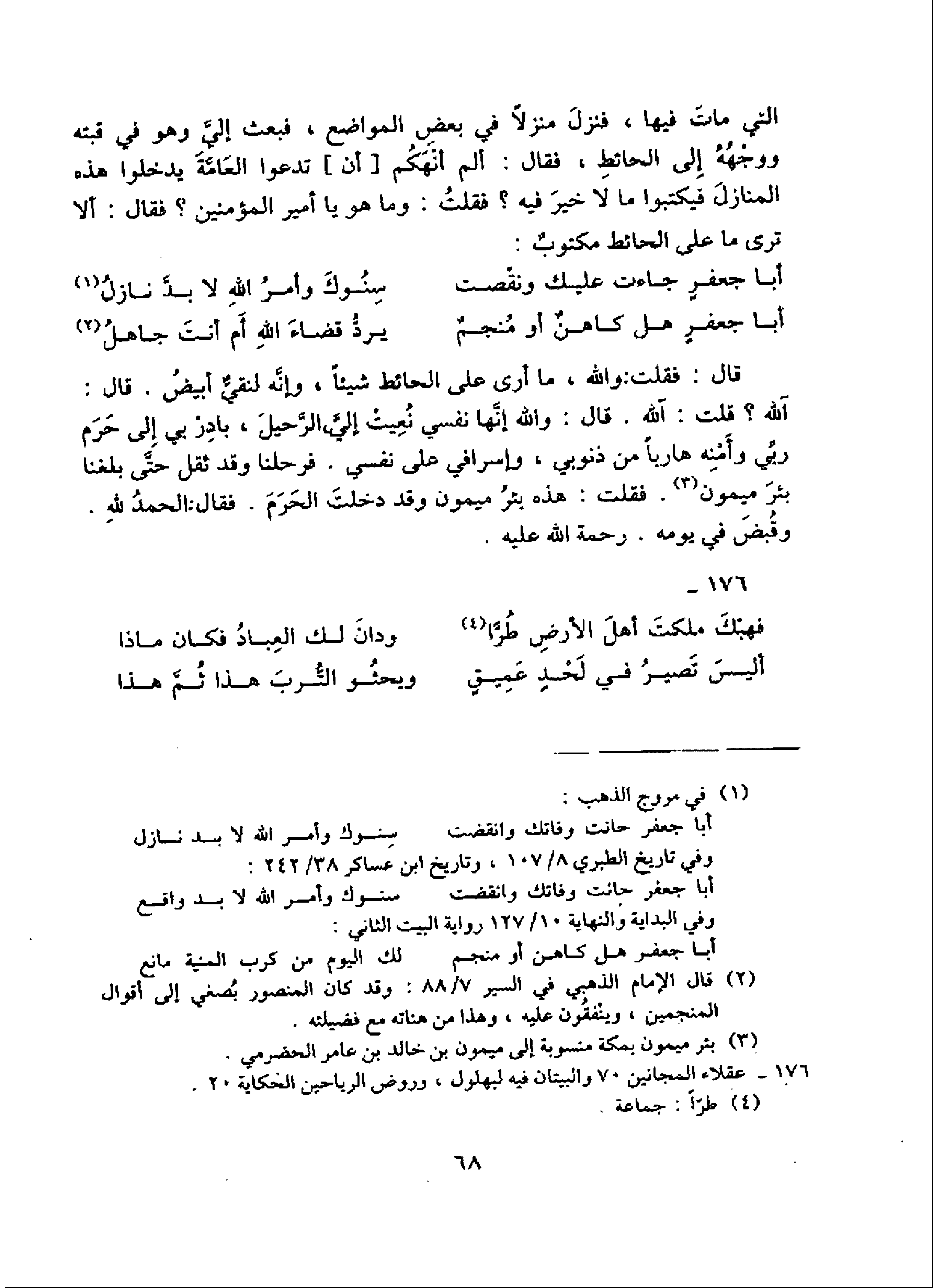 أبا جعفر هل كاهن أو منجم … يردّ قضاء الله أم أنت جاهل (¬2)