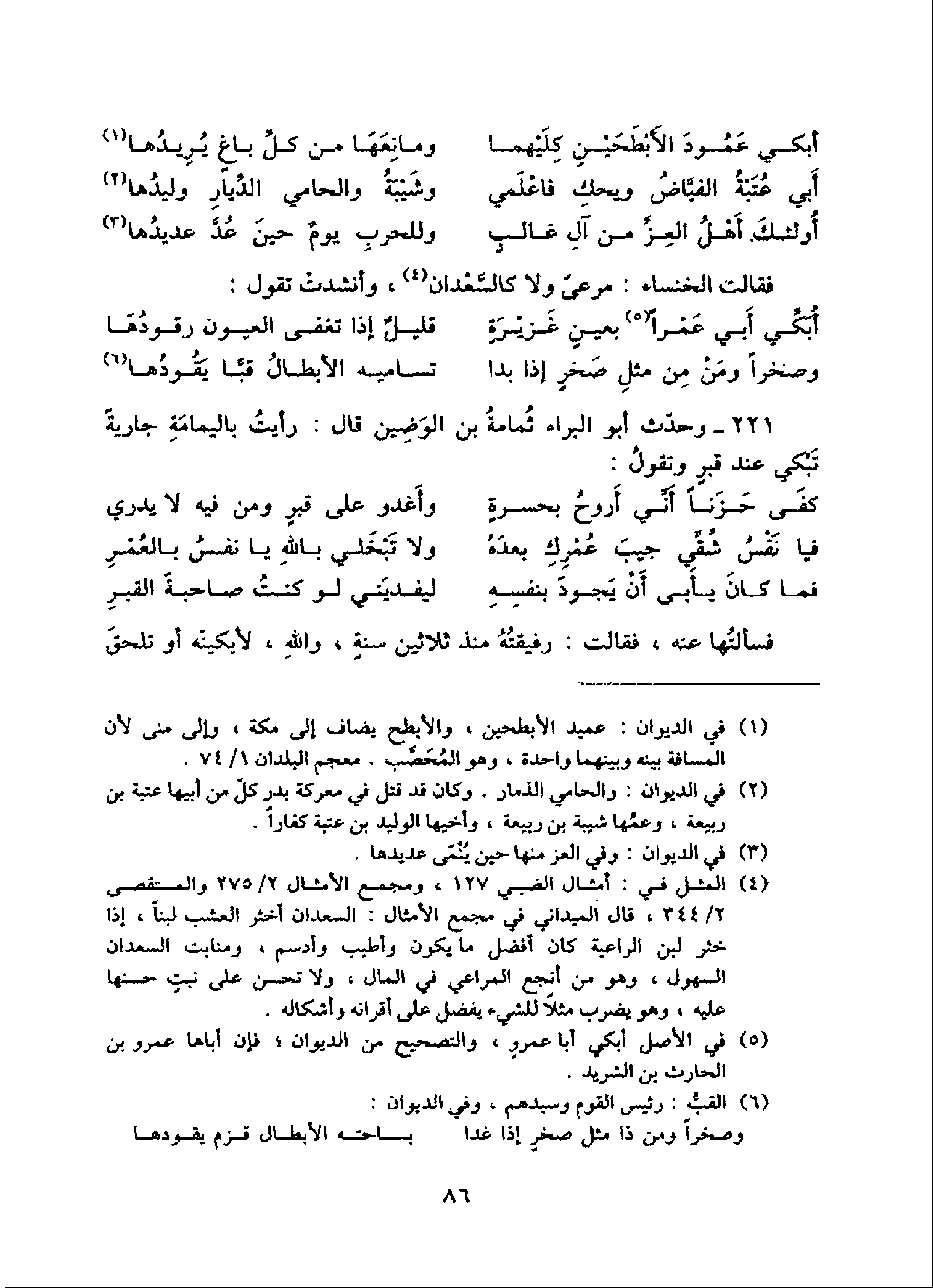 (¬5) في الأصل أبكي أبا عمرو، والتصحيح من الديوان؛ فإن أباها عمرو بن الحارث بن الشريد.