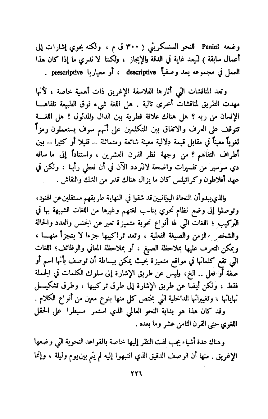وضعه Paninl للنحو السنسكريتي "300 ق م، ولكنه يحوي إشارات إلى أعمال سابقة" ليعد غاية في الدقة والإيجاز، ولكننا لا ندري ما إذا كان هذا العمل في مجموعه يعد وصفيا descriptive، أو معياريا Prescriptive.
