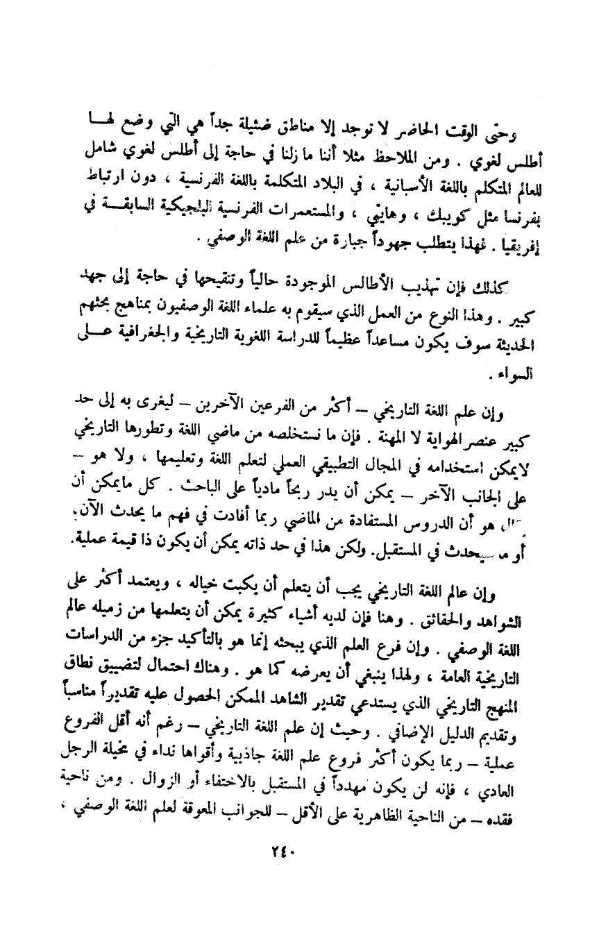 كذلك فإن تهذيب الأطالس الموجودة حاليا وتنقيحها في حاجة إلى جهد كبير, وهذا النوع من العمل الذي سيقوم به علماء اللغة الوصفيون بمناهج بحثهم الحديثة سوف يكون مساعدا عظيما للدراسة اللغوية التاريخية والجغرافية على السواء.