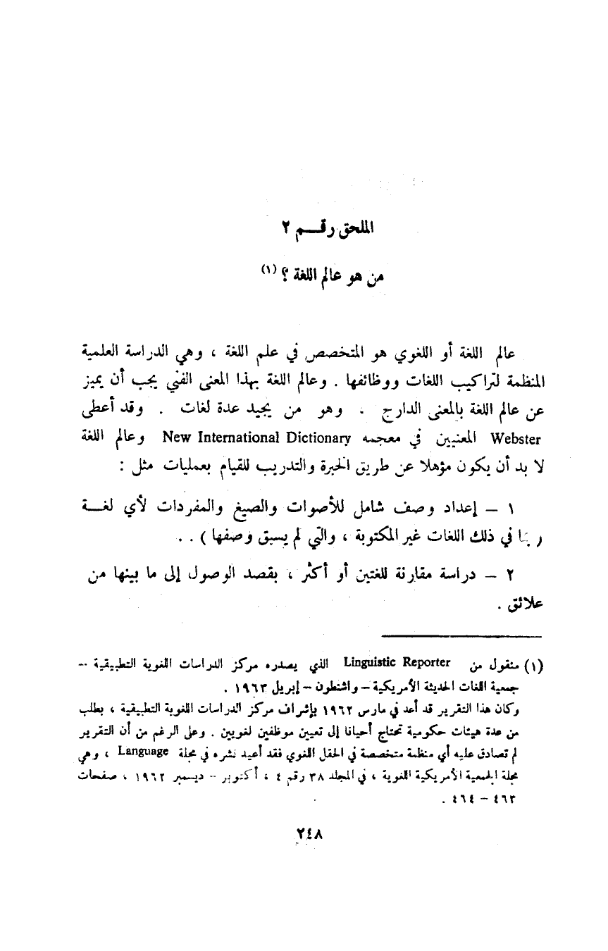 1 منقول من Linguistic Reporter الذي يصدره مركز الدراسات اللغوية التطبيقية, جمعية اللغات الحديثة الأمريكية, واشنطون, أبريل 1963.