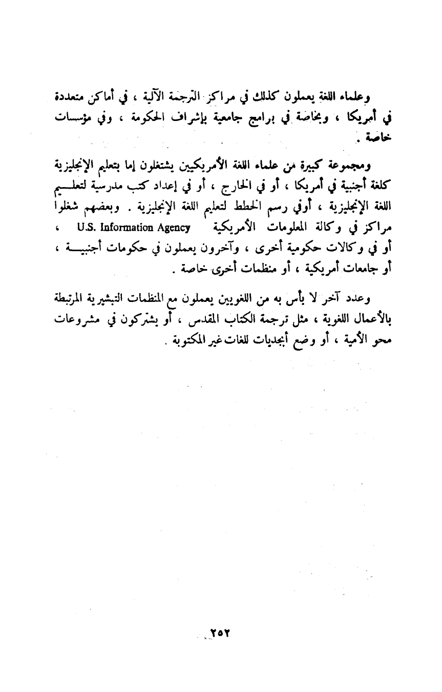 وعدد آخر لا بأس به من اللغويين يعملون مع المنظمات التبشيرية المرتبطة بالأعمال اللغوية، مثل ترجمة الكتاب المقدس، أو يشتركون في مشروعات محو الأمية، أو وضع أبجديات للغات غير المكتوبة.