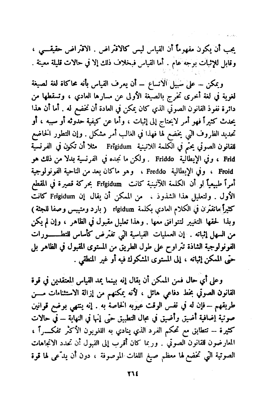 وعلى أي حال فمن الممكن أن يقال إنه بينما يمد القياس المعتقدين في قوة القانون الصوتي بخط دفاعي هائل، لأنه يمكنهم من إزالة الاستثناءات من طريقهم فإن له في نفس الوقت عيوبه الخاصة به, إنه ينتهي بوضع قوانين صوتية إضافية أضيق وأضيق في مجال التطبيق حتى إنها في النهاية -في حالات كثيرة- تتطابق مع تحكم الفرد الذي ينادي به اللغويون الأكثر تفكرا، المعارضون للقانون الصوتي. وربما كان أقرب إلى القبول أن تحدد الاتجاهات الصوتية التي تخضع لها معظم صيغ اللغات الموصوفة، دون أن يدعى لها قوة