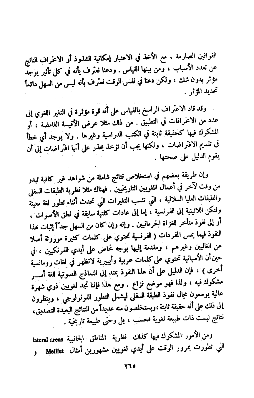 ومن الأمور المشكوك فيها كذلك نظرية المناطق الجانبية Lateral areas التي تطورت بمرور الوقت على أيدي لغويين مشهورين أمثال Meillet