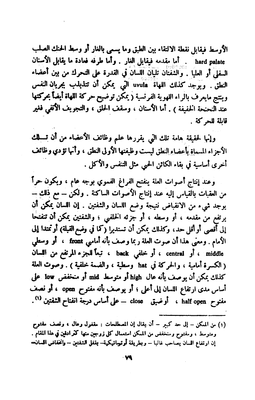 وإنها لحقيقة هامة تلك التي يقررها علم وظائف الأعضاء من أن تلك الأجزاء المسماة بأعضاء النطق ليست وظيفتها الأولى النطق، وأنها تؤدي وظائف أخرى أساسية في بقاء الكائن الحي مثل التنفس والأكل.