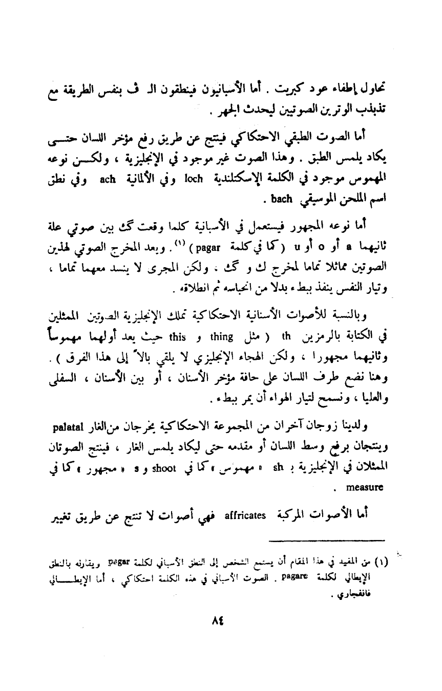 1 من المفيد في هذا المقام أن يستمع الشخص إلى النطق الإسباني لكلمة pagar, ويقارنه بالنطق الإيطالي لكلمة pagare. الصوت الإسباني في هذه الكلمة احتكاكي، أما الإيطال فانفجاري.