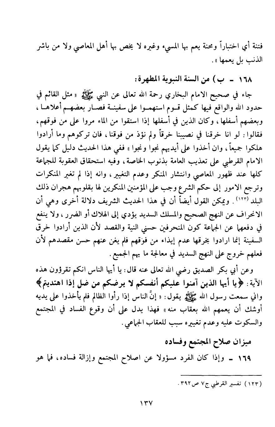 169- وإذا كان الفرد مسئولًا عن إصلاح المجتمع وإزالة فساده، فما هو