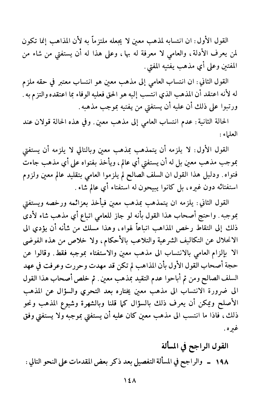 198- والراجح في المسألة التفصيل بعد ذكر بعض المقدمات على النحو التالي: