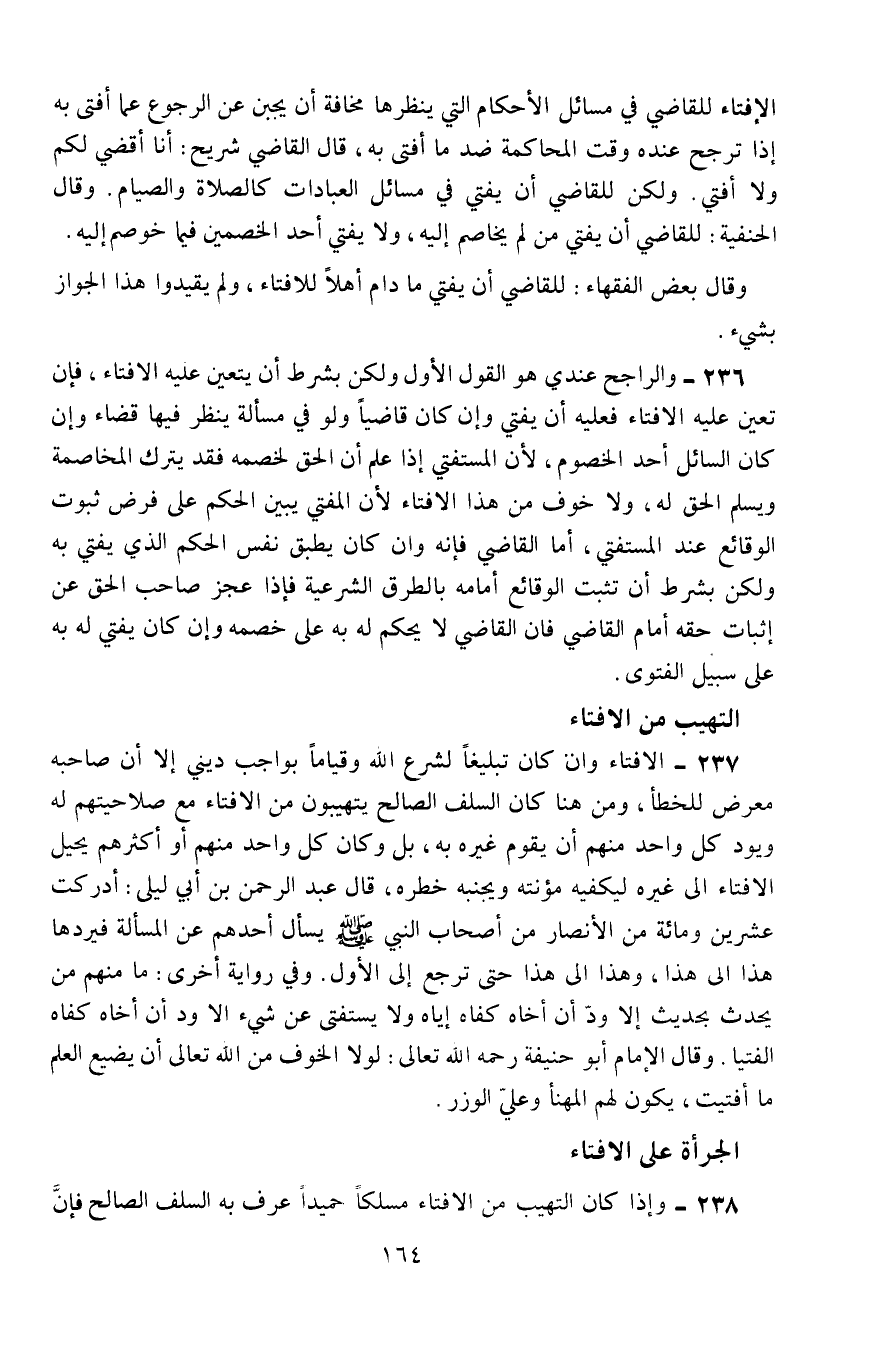 238- وإذا كان التهيّب من الإفتاء مسلكًا حميدًا عرف به السلف الصالح، فإن