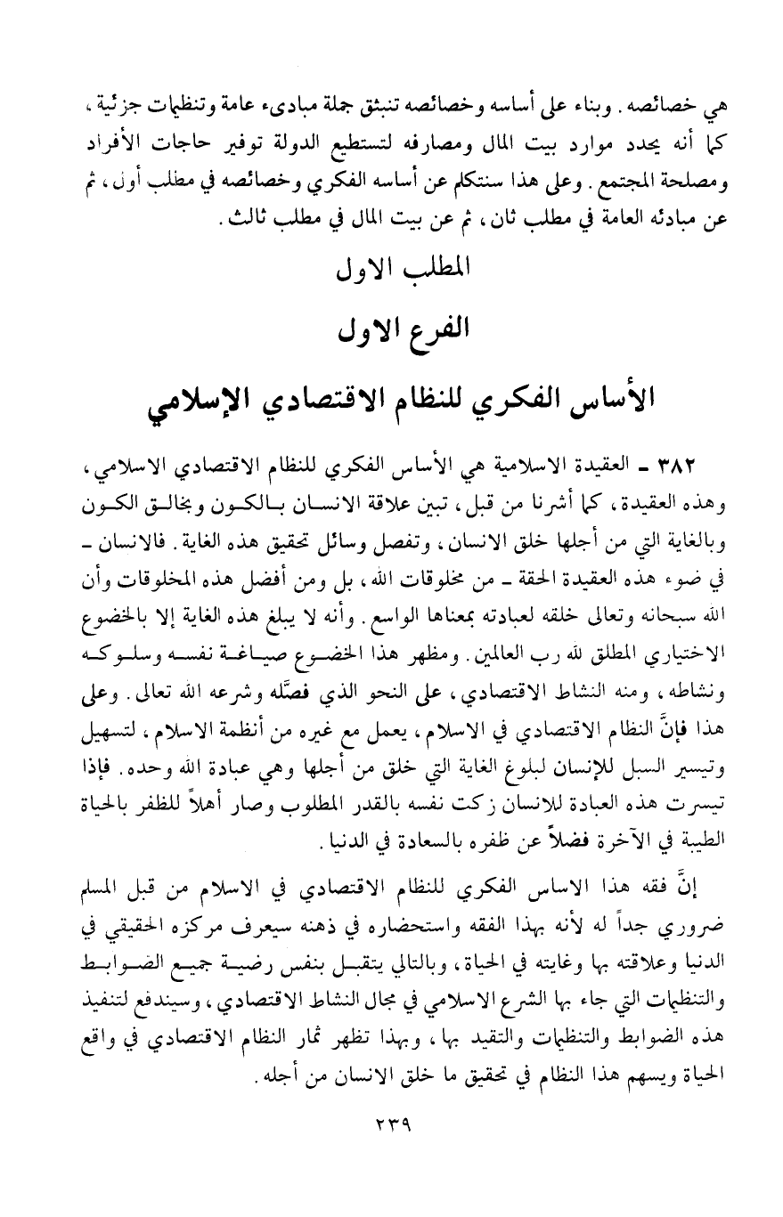 المطلب الأول: الفرع الأول: الأساس الفكري للنظام الاقتصادي الإسلامي