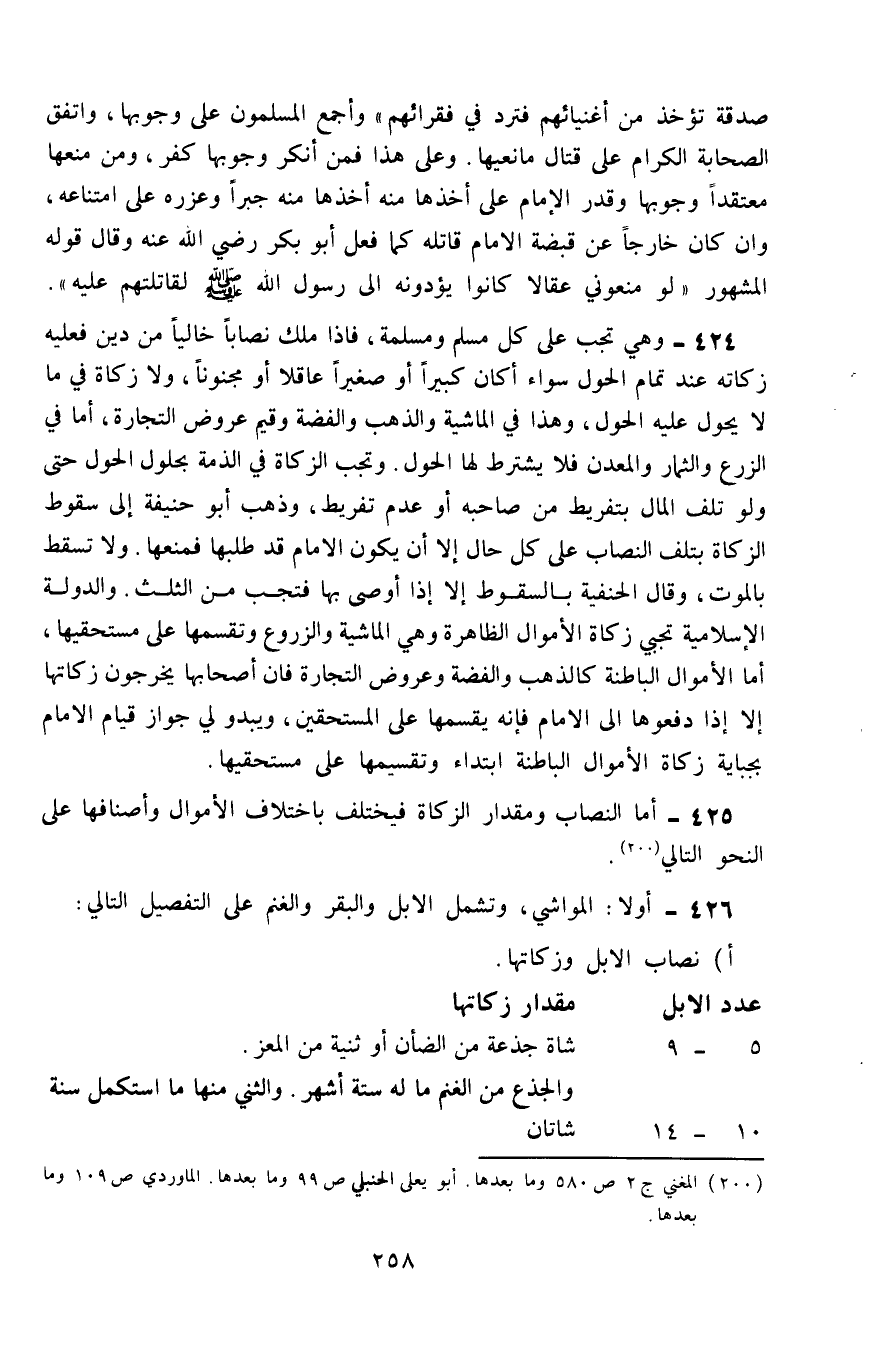 426- أولًا: المواشي: وتشمل الإبل والبقر والغنم على التفصيل التالي: