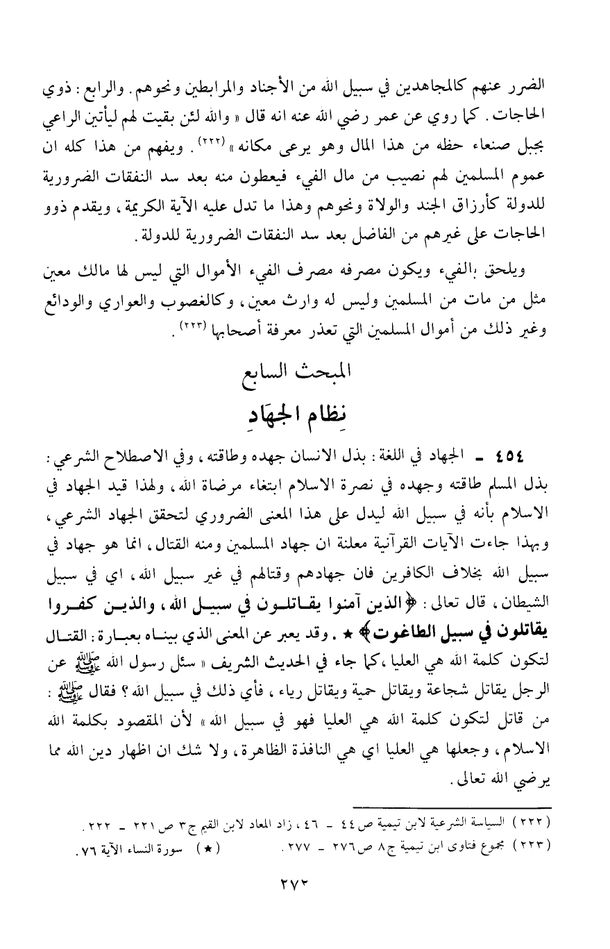 المبحث السابع: نظام الجهاد