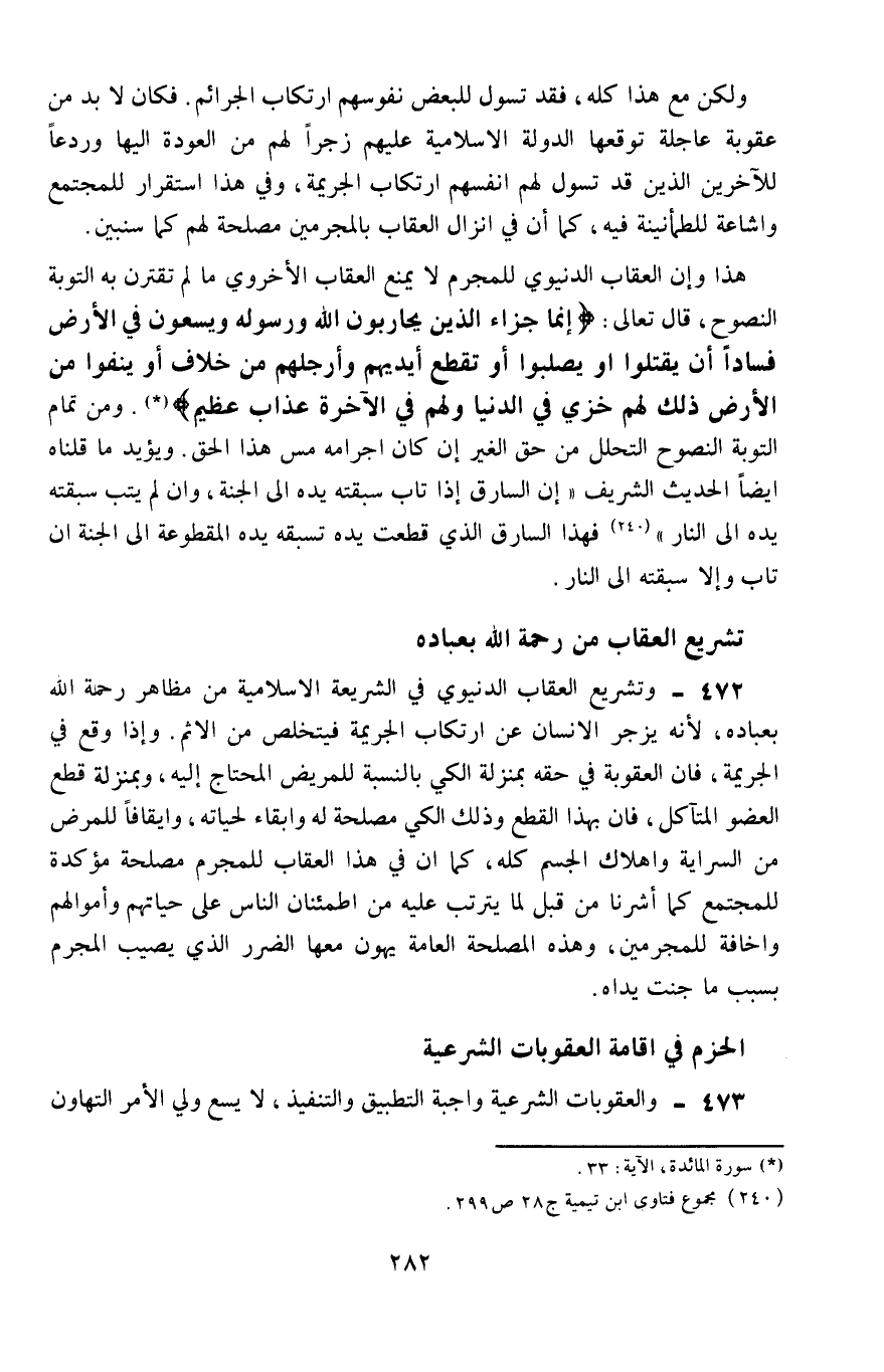 473- والعقوبات الشرعية واجبة التطبيق والتنفيد، لا يسع ولي الأمر التهاون