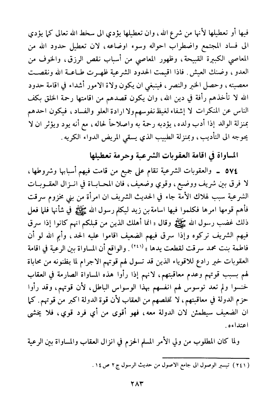 المساواة في إقامة العقوبات الشرعية وحرمة تعطيلها: