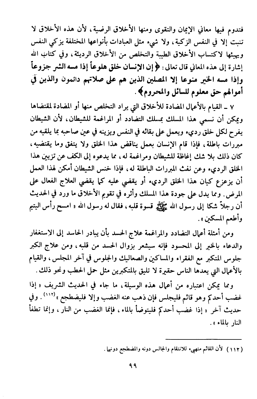 فتدوم فيها معاني الإيمان والتقوى، ومنها الأخلاق الرضية؛ لأنَّ هذه الأخلاق لا تنبت إلّا في النفس الزكية، ولا شيء مثل العبادات بأنواعها المختلفة يزكي النفس ويهيئها لاكتساب الأخلاق الطيبة والتخلص من الاخلاق الرديئة، وفي كتاب الله إشارة إلى هذه المعاني، قال تعالى: {إِنَّ الْإِنْسَانَ خُلِقَ هَلُوعًا، إِذَا مَسَّهُ الشَّرُّ جَزُوعًا، وَإِذَا مَسَّهُ الْخَيْرُ مَنُوعًا، إِلَّا الْمُصَلِّينَ، الَّذِينَ هُمْ عَلَى صَلَاتِهِمْ دَائِمُونَ، وَالَّذِينَ فِي أَمْوَالِهِمْ حَقٌّ مَعْلُومٌ، لِلسَّائِلِ وَالْمَحْرُومِ} .