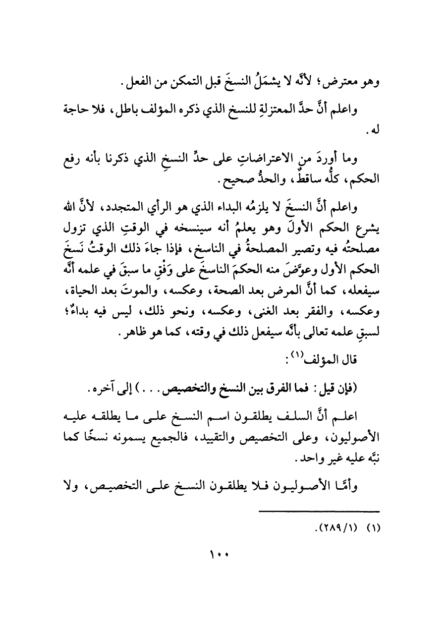 واعلم أنَّ حدَّ المعتزلةِ للنسخ الذي ذكره المؤلف باطل، فلا حاجة له.