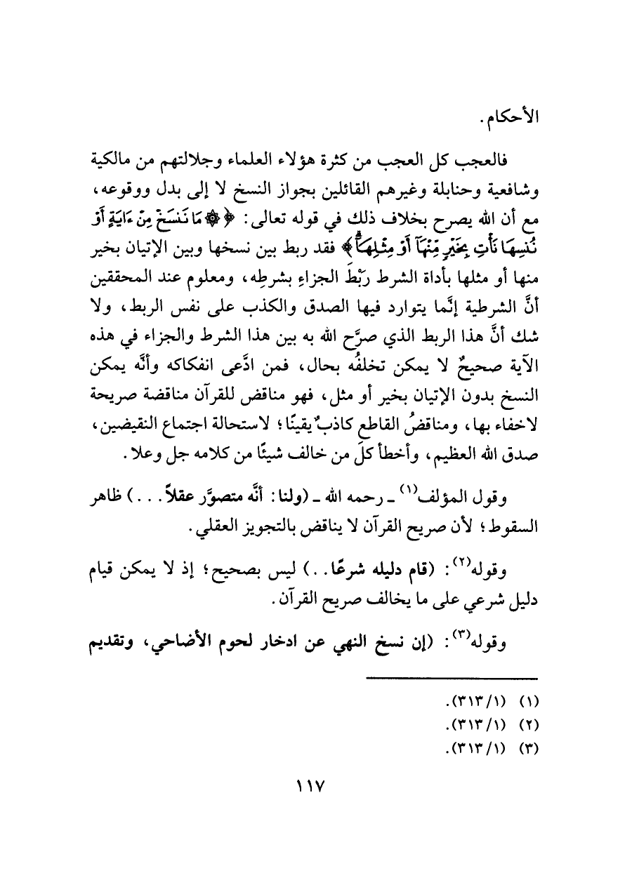 وقوله (¬٢): (قام دليله شرعًا. .) ليس بصحيح، إذ لا يمكن قيام دليل شرعي على ما يخالف صريح القرآن.