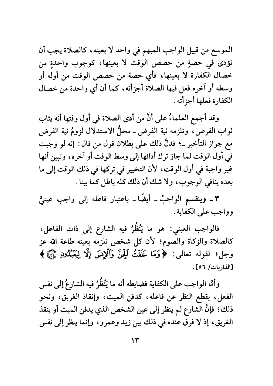 ٣ - وينقسم الواجبُ -أيضًا- باعتبار فاعله إلى واجب عينيٍّ وواجب على الكفاية.