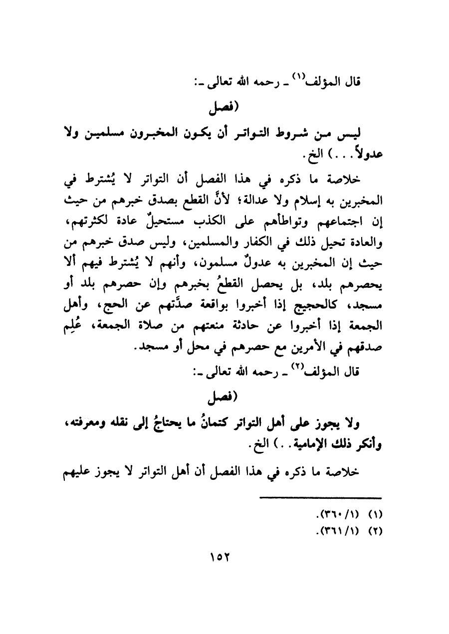 ليس من شروط التواتر أن يكون المخبرون مسلمين ولا عدولًا. . .) الخ.