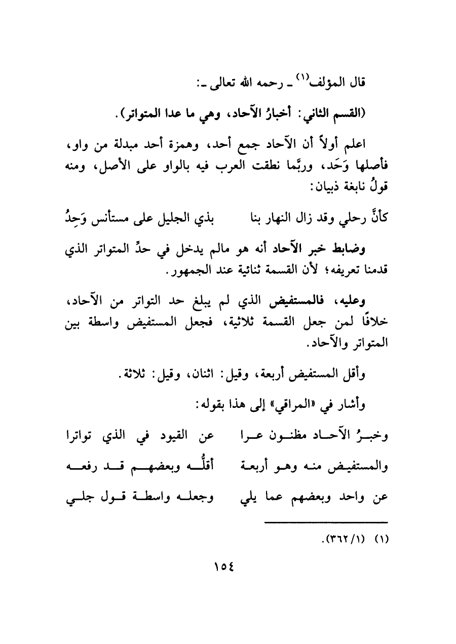 (القسم الثاني: أخبارُ الآحاد، وهي ما عدا المتواتر).