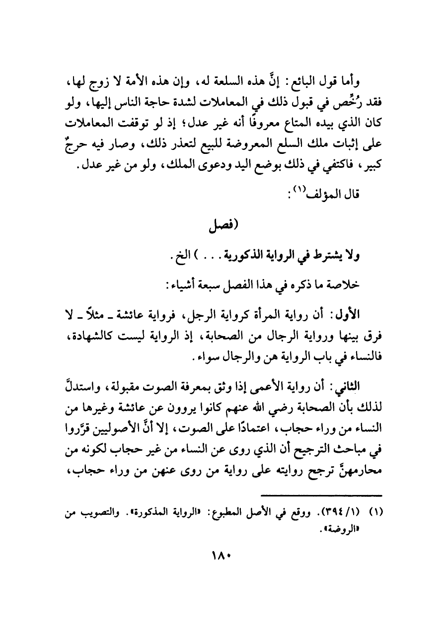 (¬١) (١/ ٣٩٤). ووقع في الأصل المطبوع: "الرواية المذكورة". والتصويب من "الروضة".